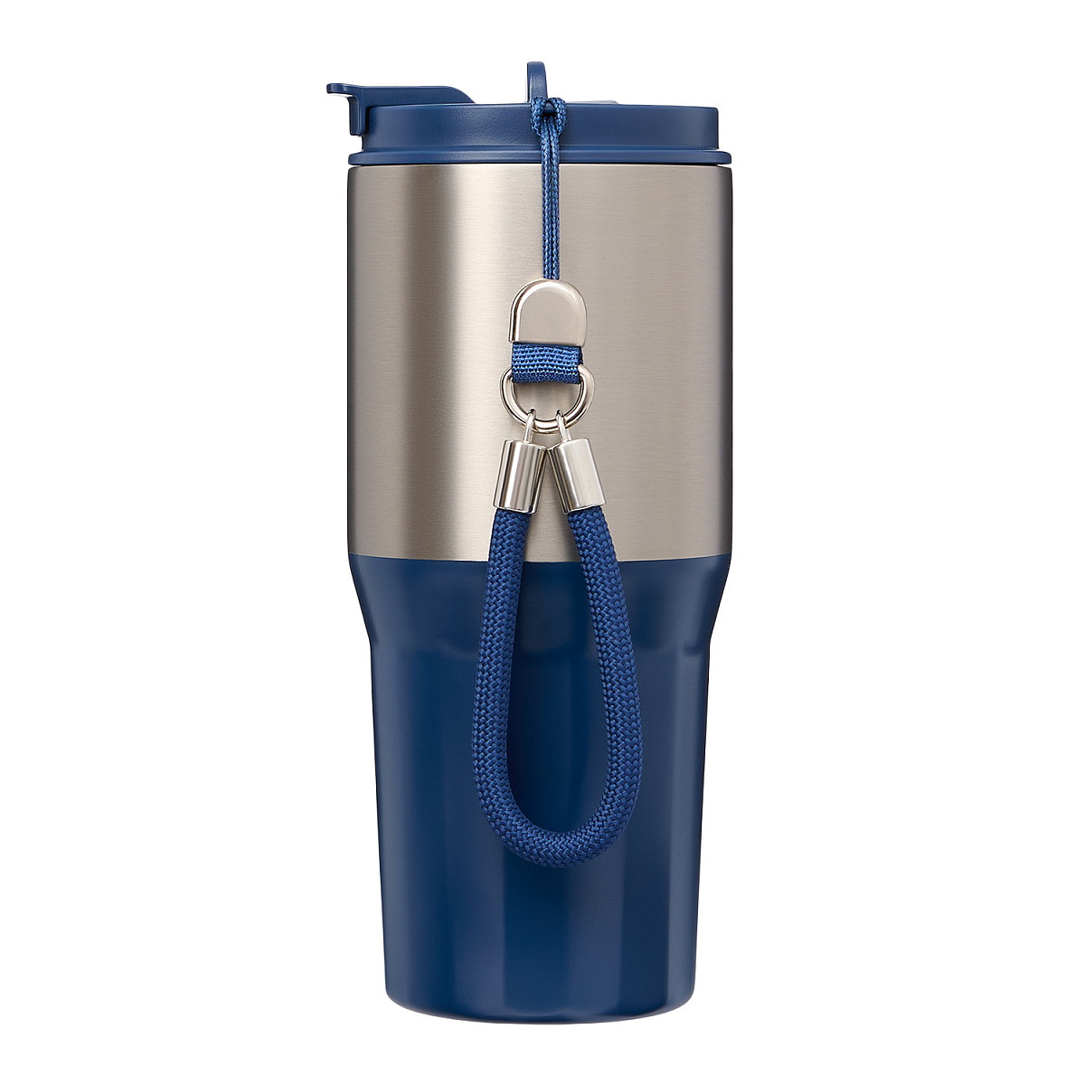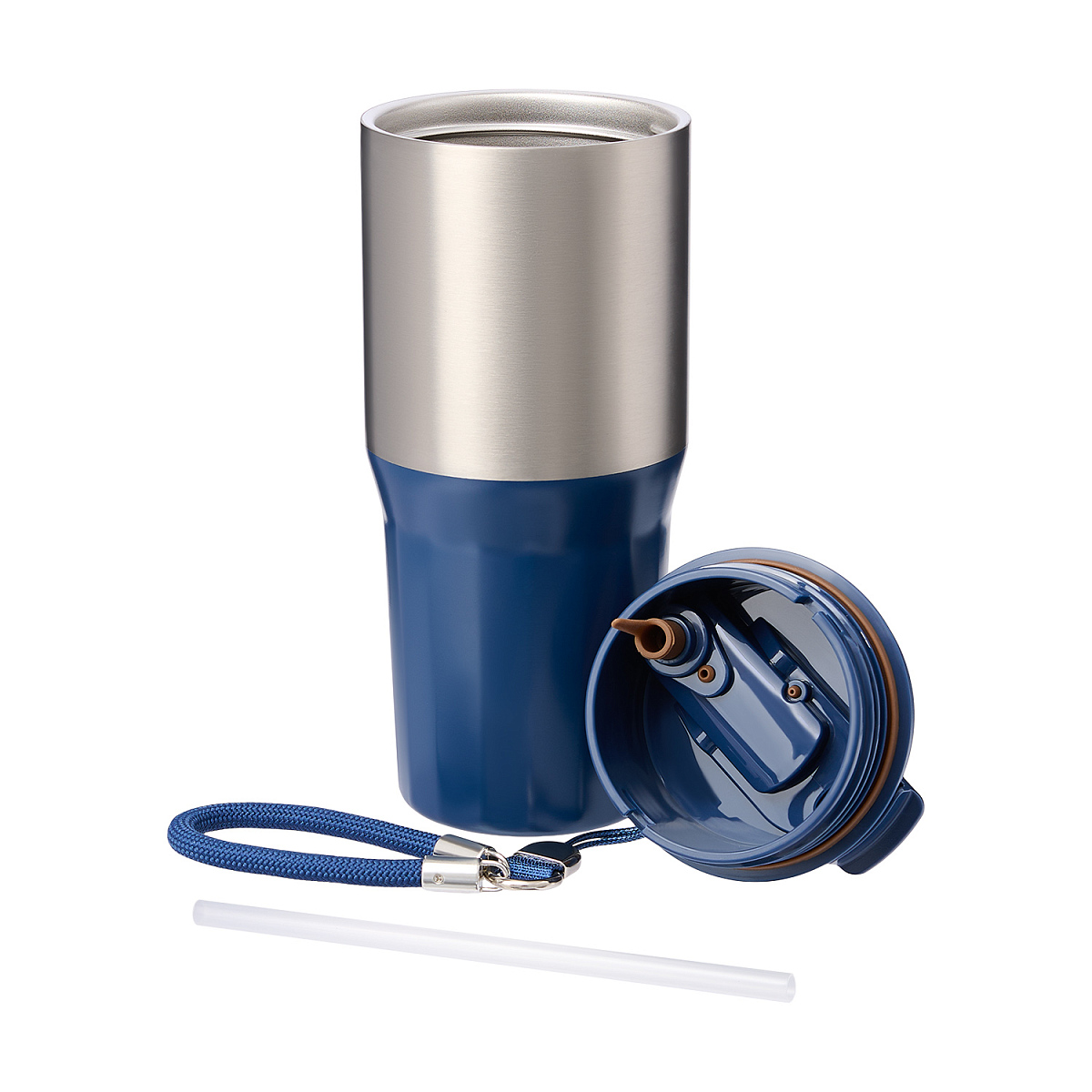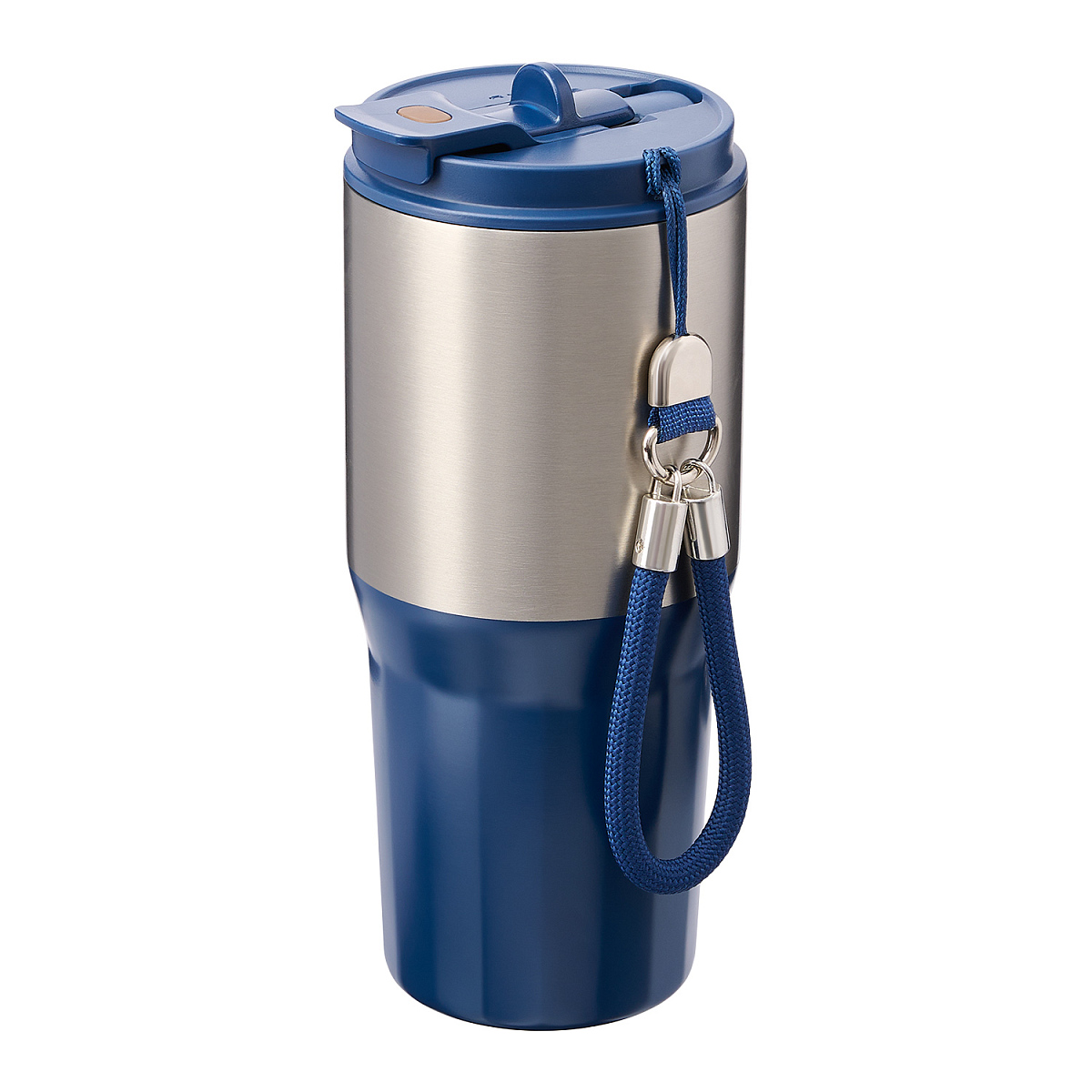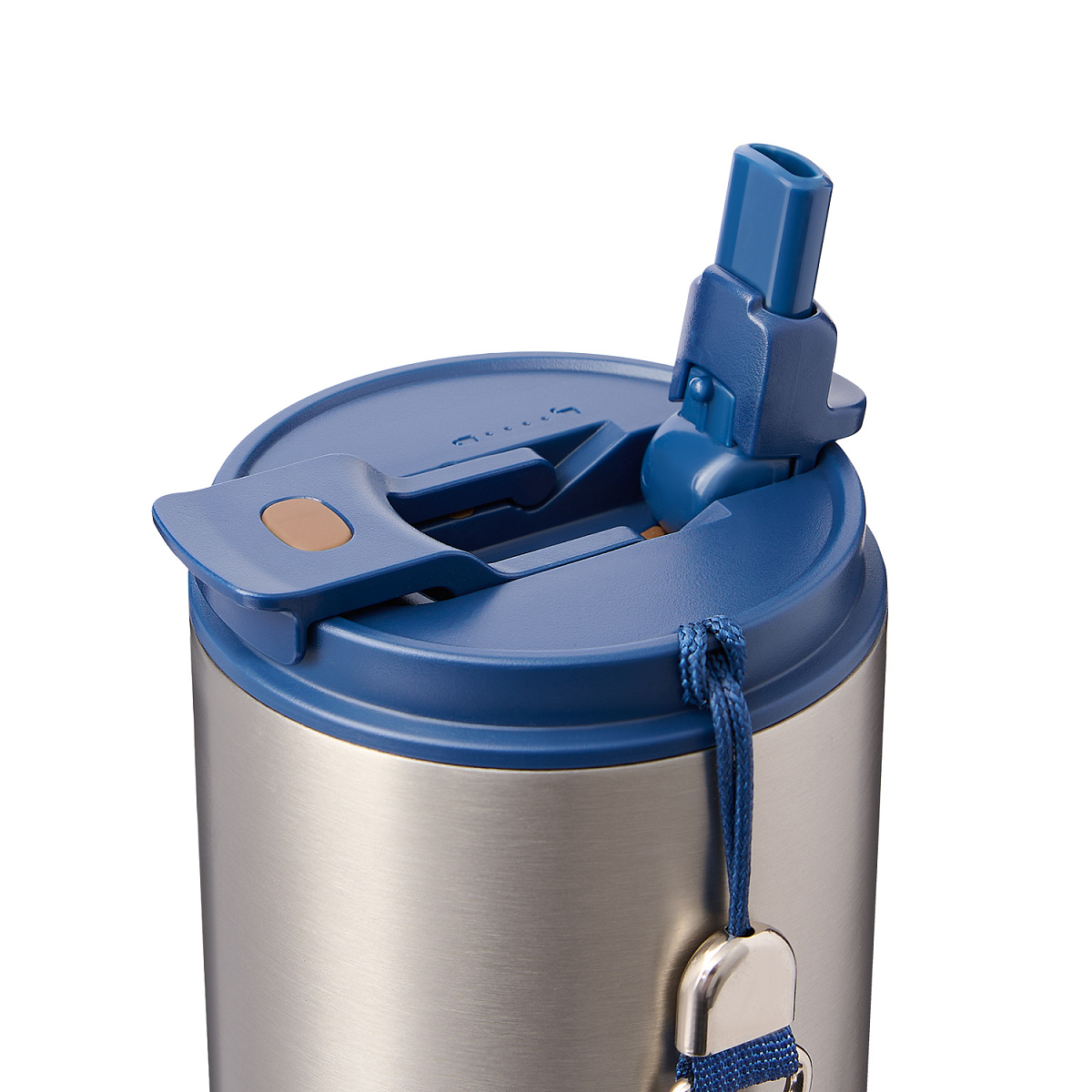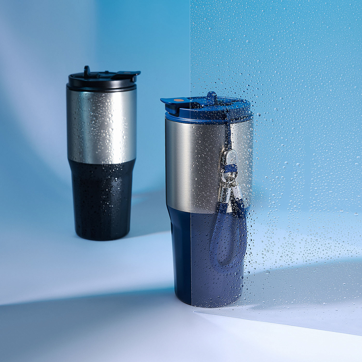 Внутренний слой из пищевой стали 304 марки, которая не впитывает запахи, не окисляется и сохраняет вкус напитка. Внешний корпус надежно защищен 201 сталью с комбинированным покрытием, где матовая текстура сочетается с гладким акцентом. В комплекте идет удобный, прочный и легко снимаемый ремешок, который превращает термокружку в идеальный аксессуар для активного образа жизни.