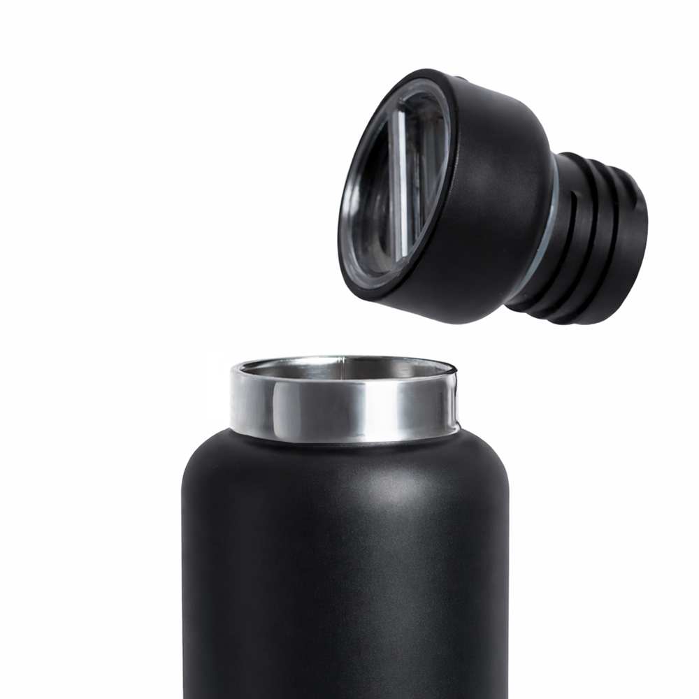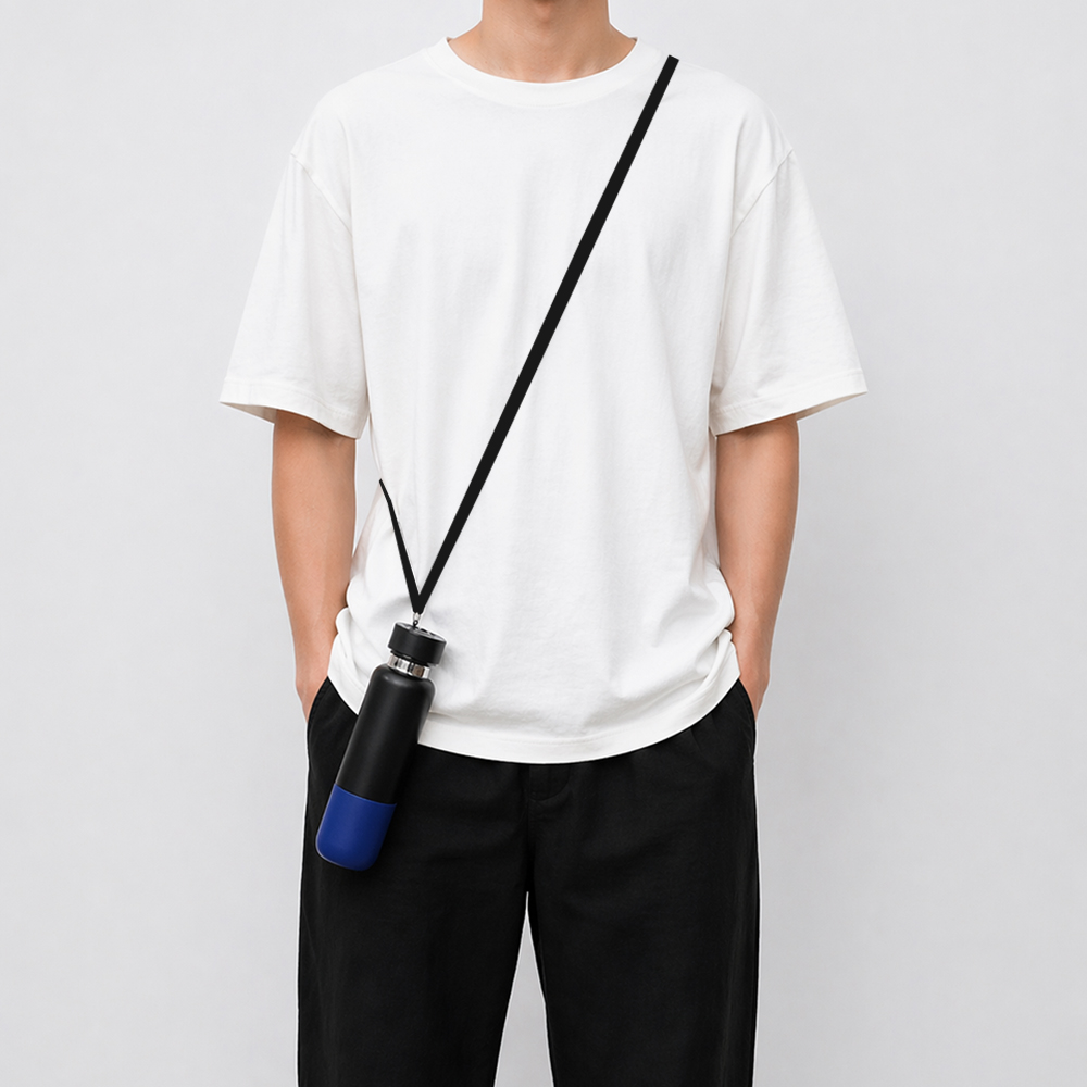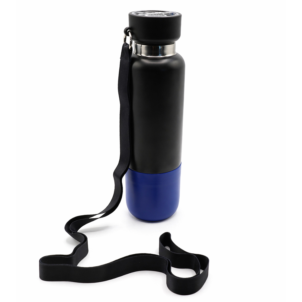 Термос Hike c ланьярдом и манжетой, чёрный-синий можно заказать в нашей компании по самой доступной цене от 1 204.44 рублей.