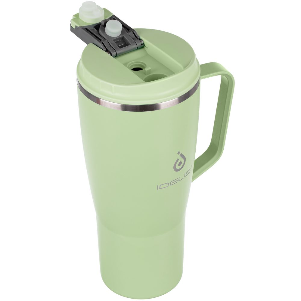 - 2 крышки в комплекте: одна на 100% герметичная с механизмом блокировки отверстия для питья, вторая — с отверстием для трубочки