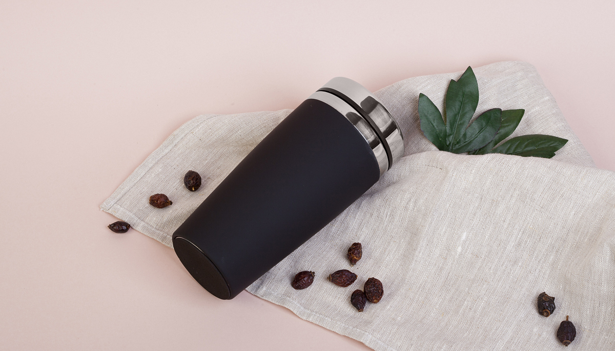 Внешняя стенка термостакана изготовлена из нержавеющей стали с уникальным прорезиненным напылением soft-touch, а внутренняя стенка выполнена из высококачественной пищевой, нержавеющей стали. Корпус изделия персонализируется по окружности встык. У термостакана отвинчивающаяся крышка.