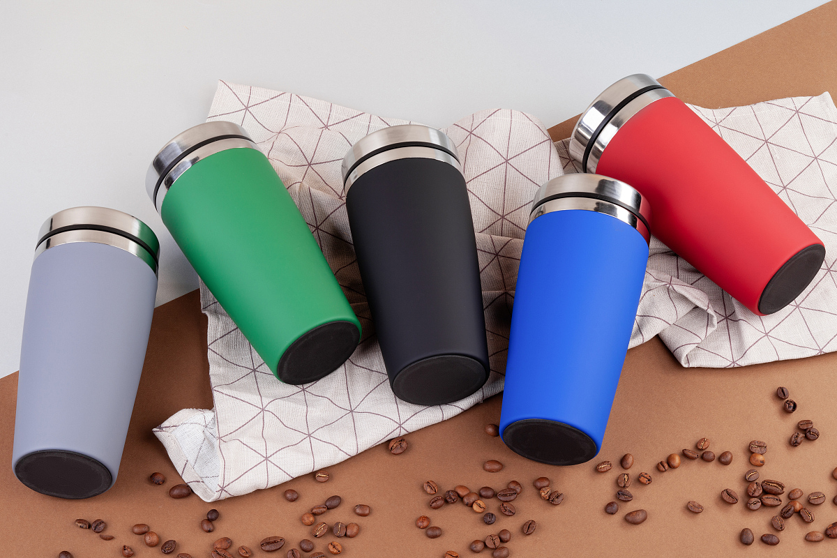 Внешняя стенка термостакана изготовлена из нержавеющей стали с уникальным прорезиненным напылением soft-touch, а внутренняя стенка выполнена из высококачественной пищевой, нержавеющей стали. Корпус изделия персонализируется по окружности встык. У термостакана отвинчивающаяся крышка.