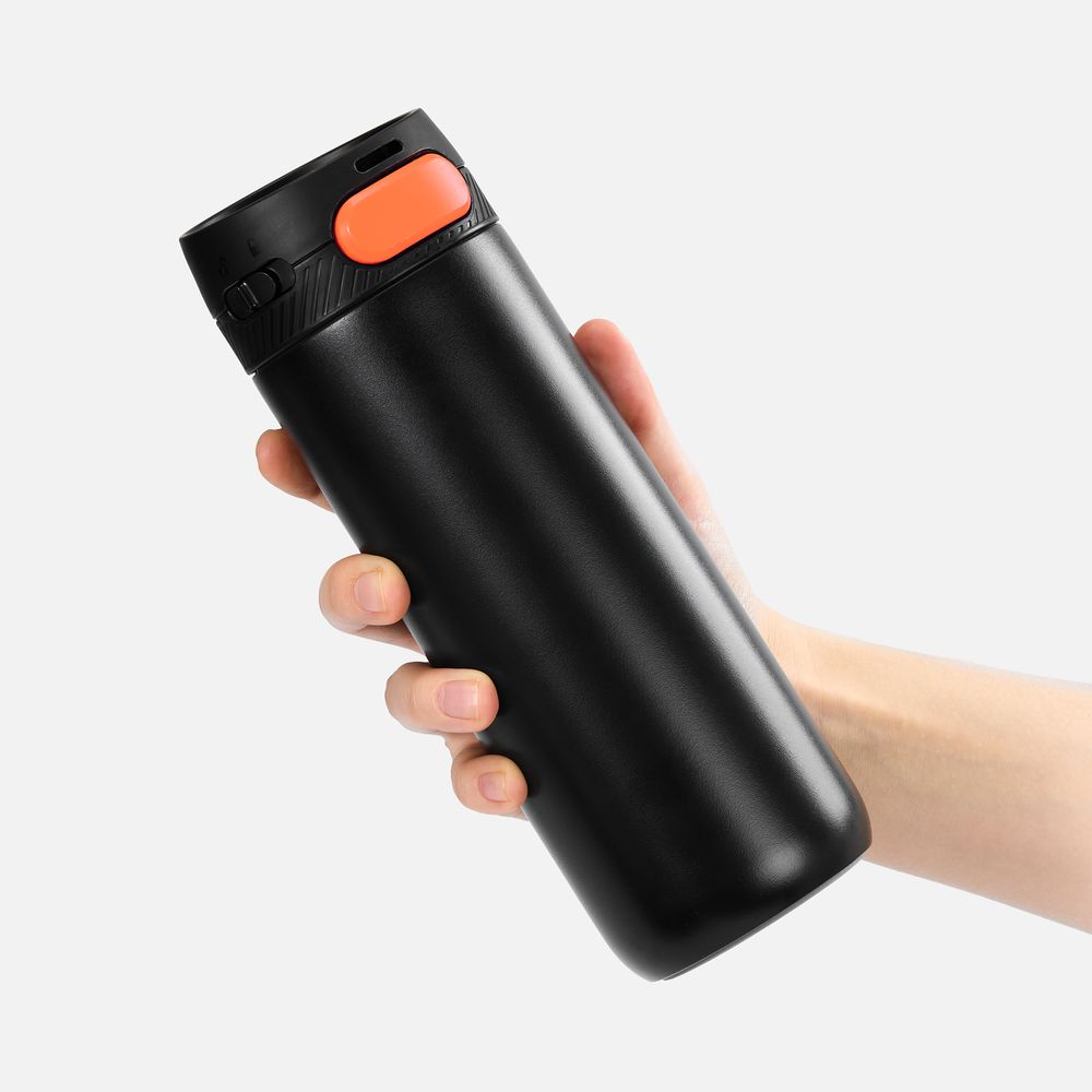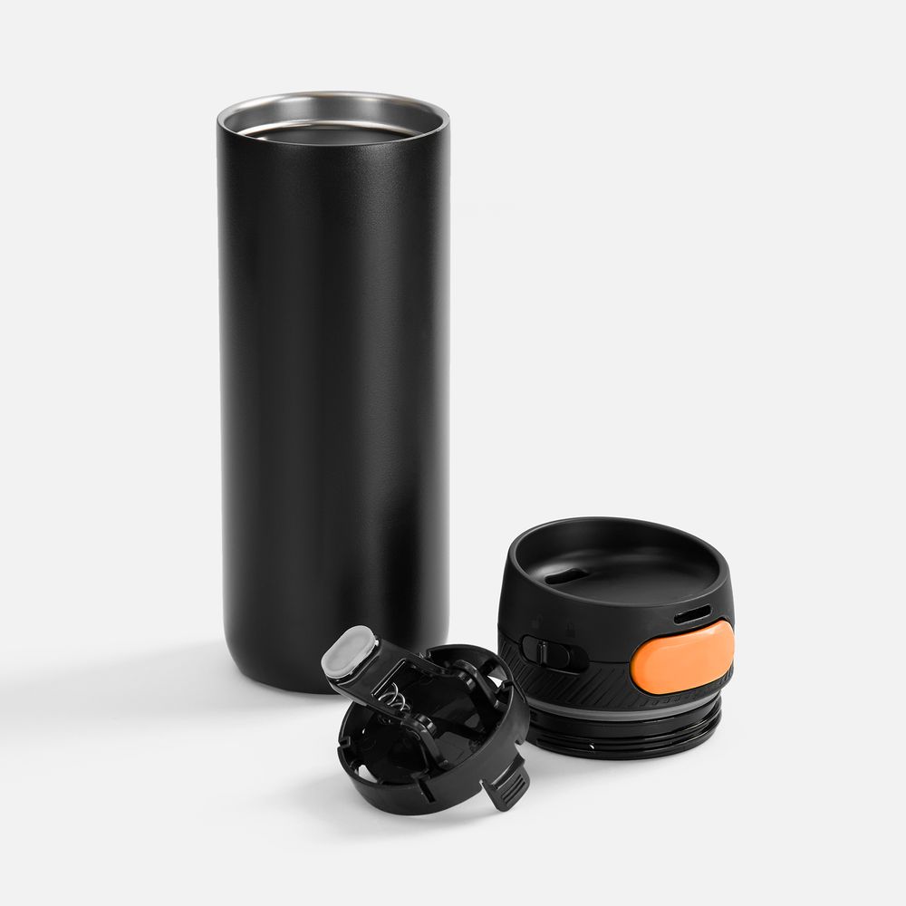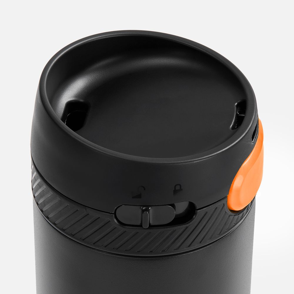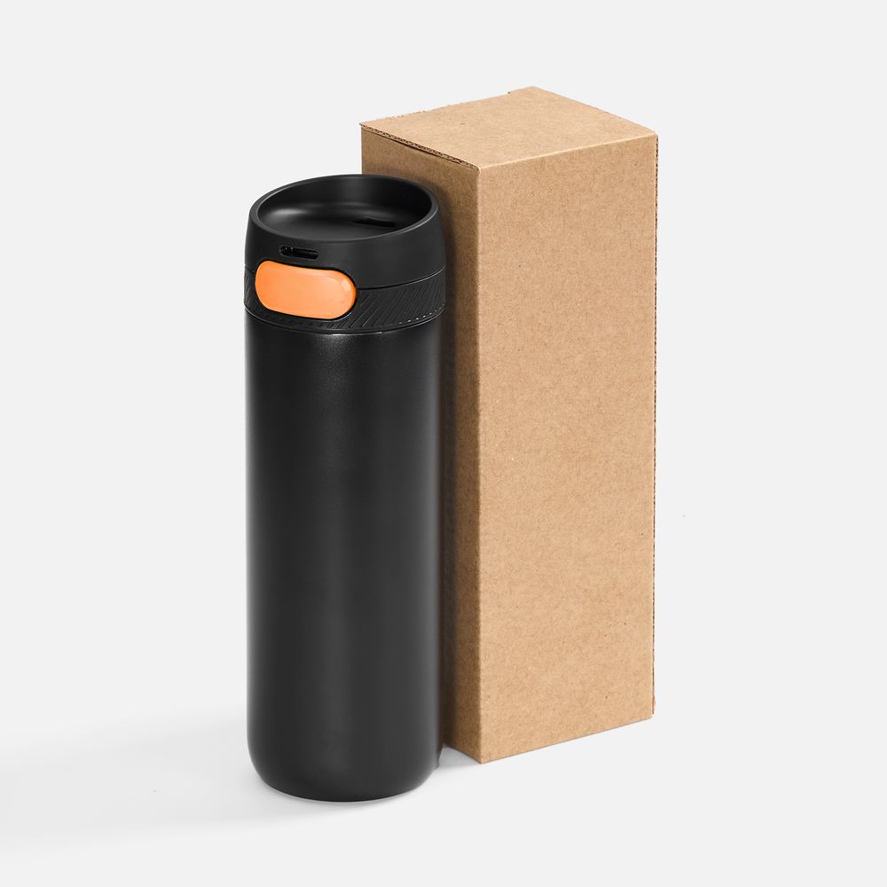 Термостакан X1 с цветной кнопкой, черный с оранжевым можно заказать в нашей компании по самой доступной цене от рублей.
