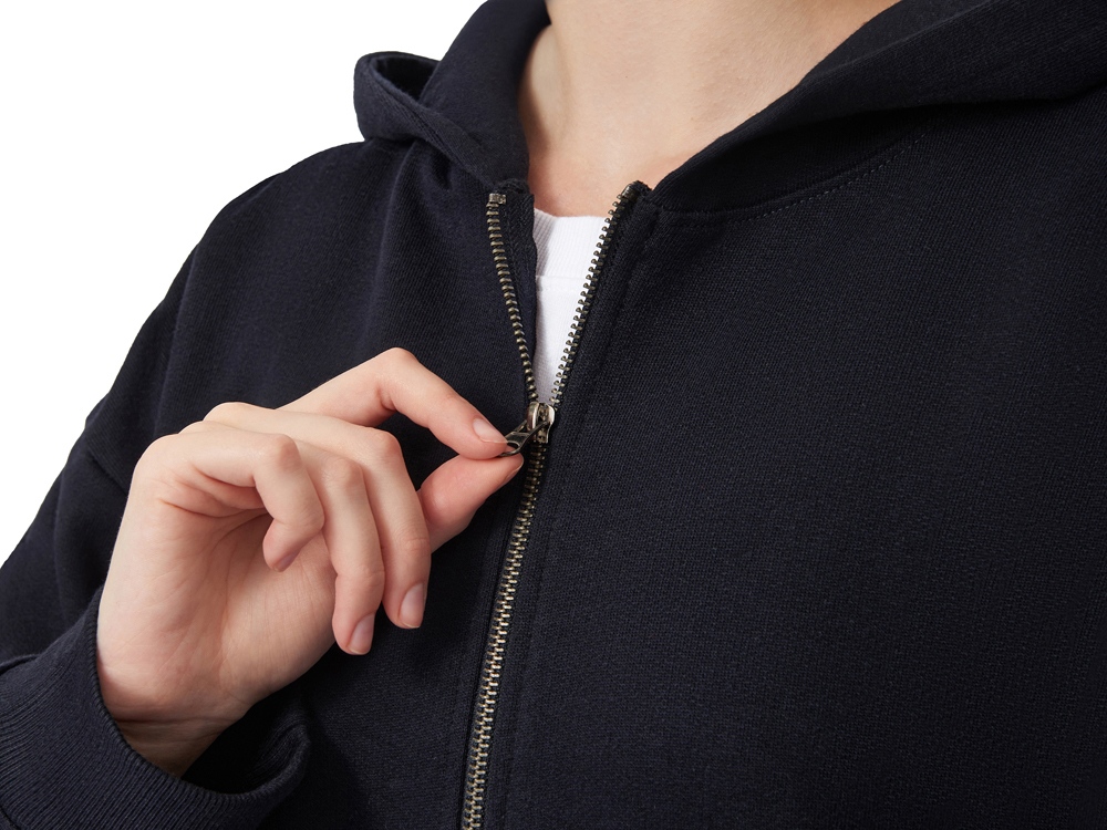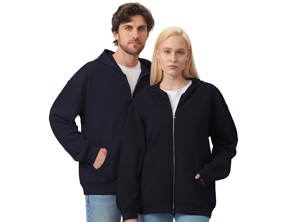 Толстовка на молнии с капюшоном. Риб 2х2 по манжетам и низу изделия. - удобный капюшон на подкладке из основного материала - посадка оверсайз - вместительный карман кенгуру - внутри на спинке кокетка - дополнительное место для нанесения лого клиента