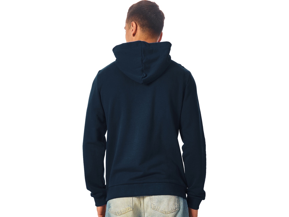 Толстовка с капюшоном (худи) из плотного хлопкового 3х ниточного футера. В капюшоне подкладка в тон, а горловина спинки дополнительно укреплена тесьмой с выделкой елочка. Капюшон без шнурков – ничего не отвлекает от вашего брендирования. Манжеты и низ изделия отделаны рибом 2х2. Глубокий комфортный карман кенгуру на полочке. Полотно из утяжеленного хлопкового футера внутри с петельками без начеса.