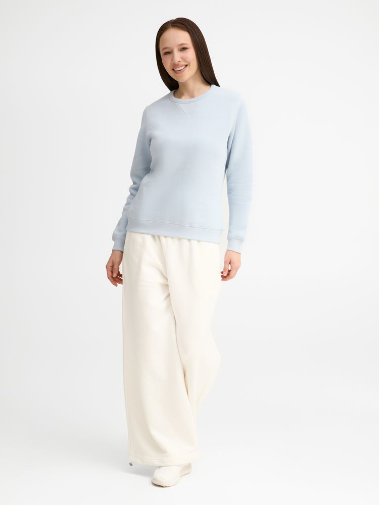 Женская утепленная толстовка с круглым вырезом и декоративной треугольной вставкой. Лейбл производителя в боковом шве изнутри, в шве горловины — только бирка с размером, что позволяет вам нанести свой логотип.