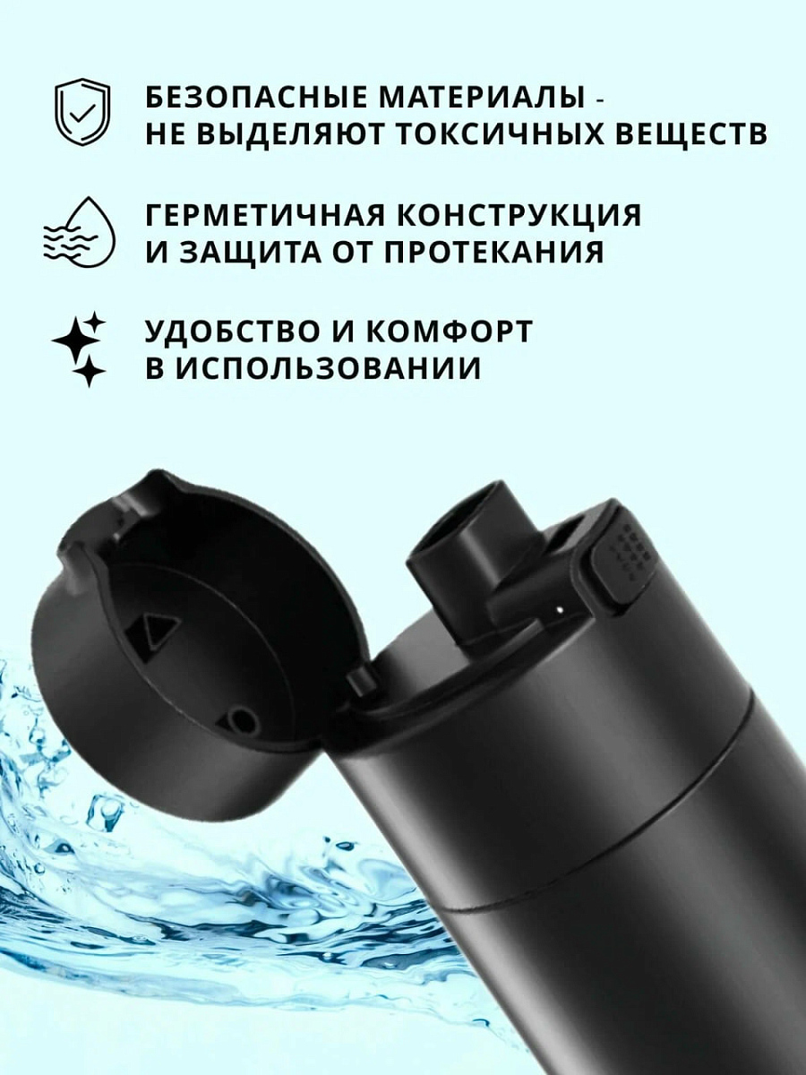 Особенности: уникальная умная бутылка для воды с функцией трекинга гидратации на базе искусственного интеллекта; функция термоса: поддержка температуры до 18-24 часов; гипоаллергенная УФ-стерилизация очищает воду до 99.9% без использования химикатов, гарантируя безопасность даже в дороге; функция напоминания выпить воды; светодиодный дисплей с функцией отображения заряда батареи, времени, температуры жидкости и функции УФ-стерилизации; время зарядки до 8 часов; заряда хватает на 15+ дней; собственное приложение для тонкой настройки своего потребления воды