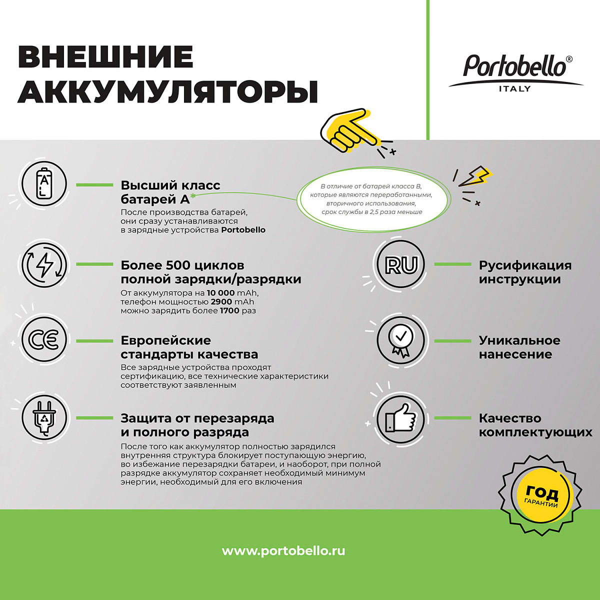 Заряжайте аккумулятор каждые 3 месяца, даже если не используете его. Перед первым использованием зарядите аккумулятор до 100%.