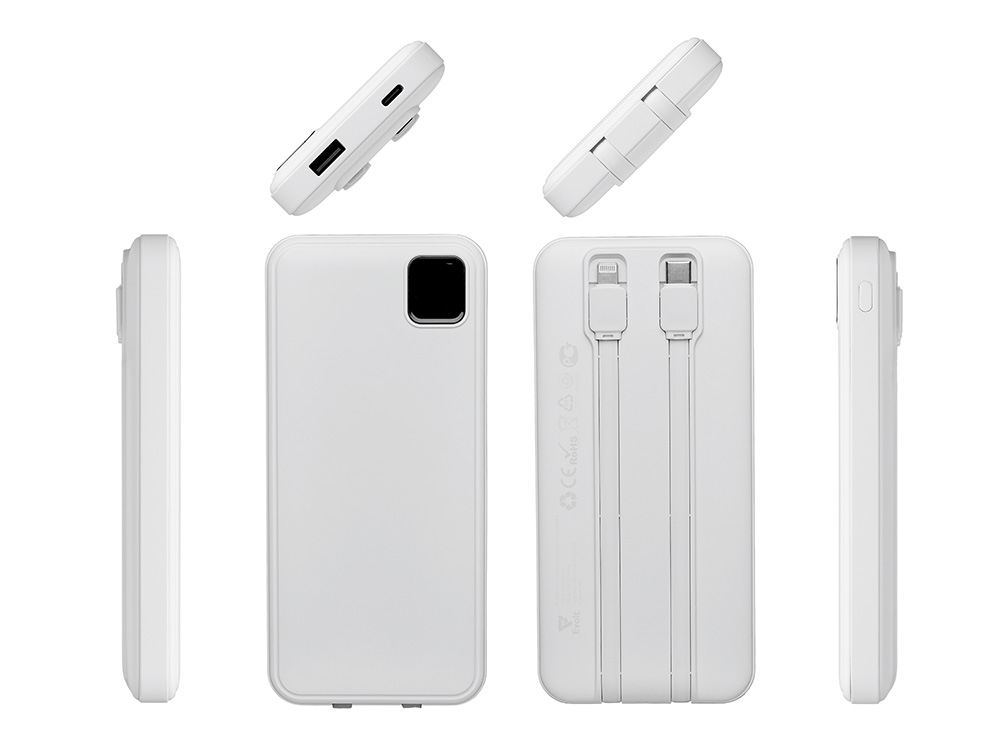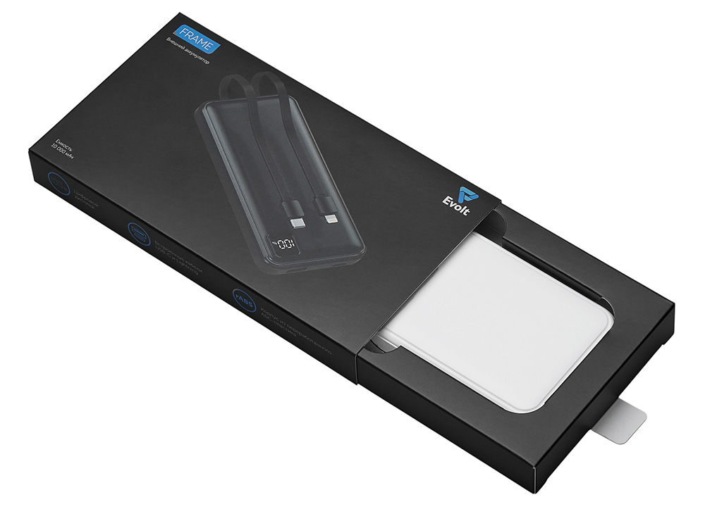 Удобный внешний аккумулятор с встроенными кабелями USB-C и Lightning — ваш надежный партнер в путешествиях, на встречах и в повседневных задачах. Цифровой дисплей в реальном времени показывает точный остаток заряда, а компактные габариты делают его таким же удобным, как смартфон. Прочный корпус из переработанного АБС-пластика и емкость 10000 мАч обеспечивают долгую работу даже при интенсивном использовании. Идеальный выбор для тех, кто ценит комфорт и функциональность в одном устройстве. Продуманная упаковка: для открытия просто потяните за язычок, и появится гаджет с нанесением.