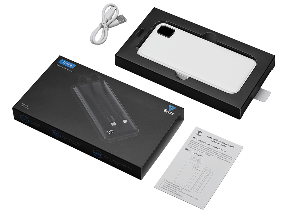 Внешний аккумулятор со встроенными кабелями Фрэйм, 10000мач можно заказать в нашей компании по самой доступной цене от 1 495.15 рублей.