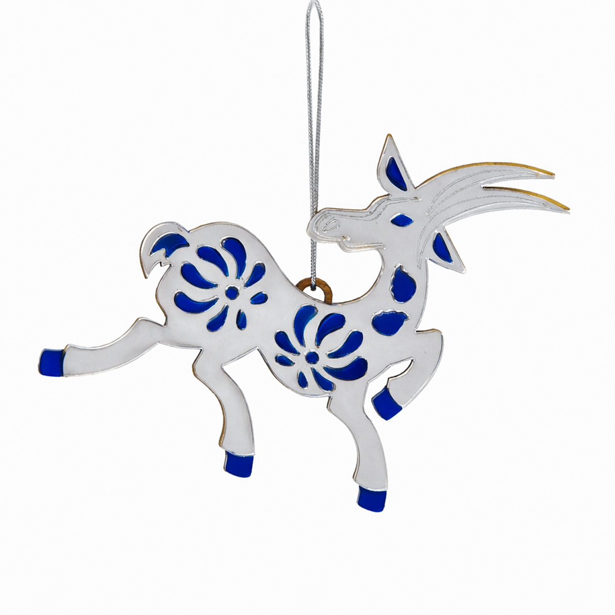 Ёлочная игрушка Коза (серебряный с синим) можно заказать в нашей компании по самой доступной цене от 645 рублей.