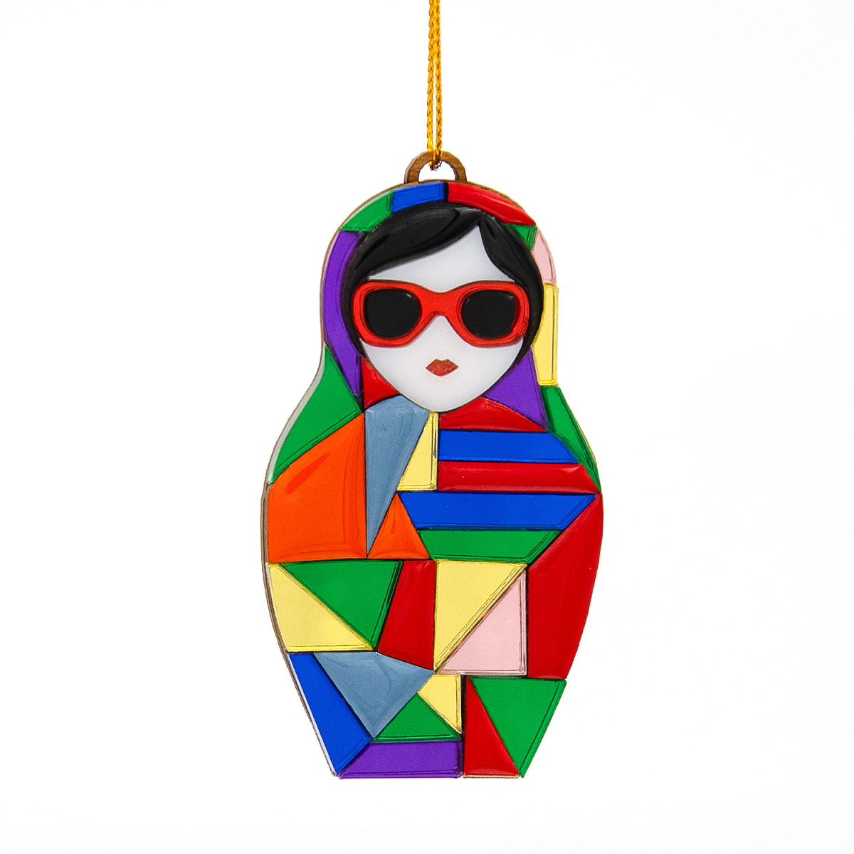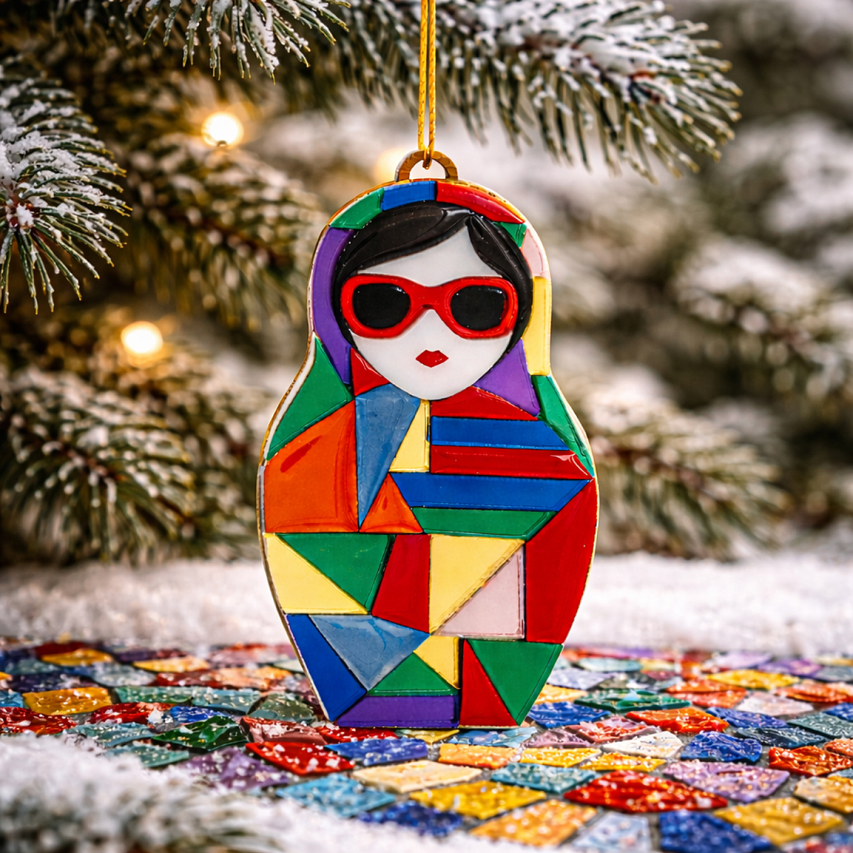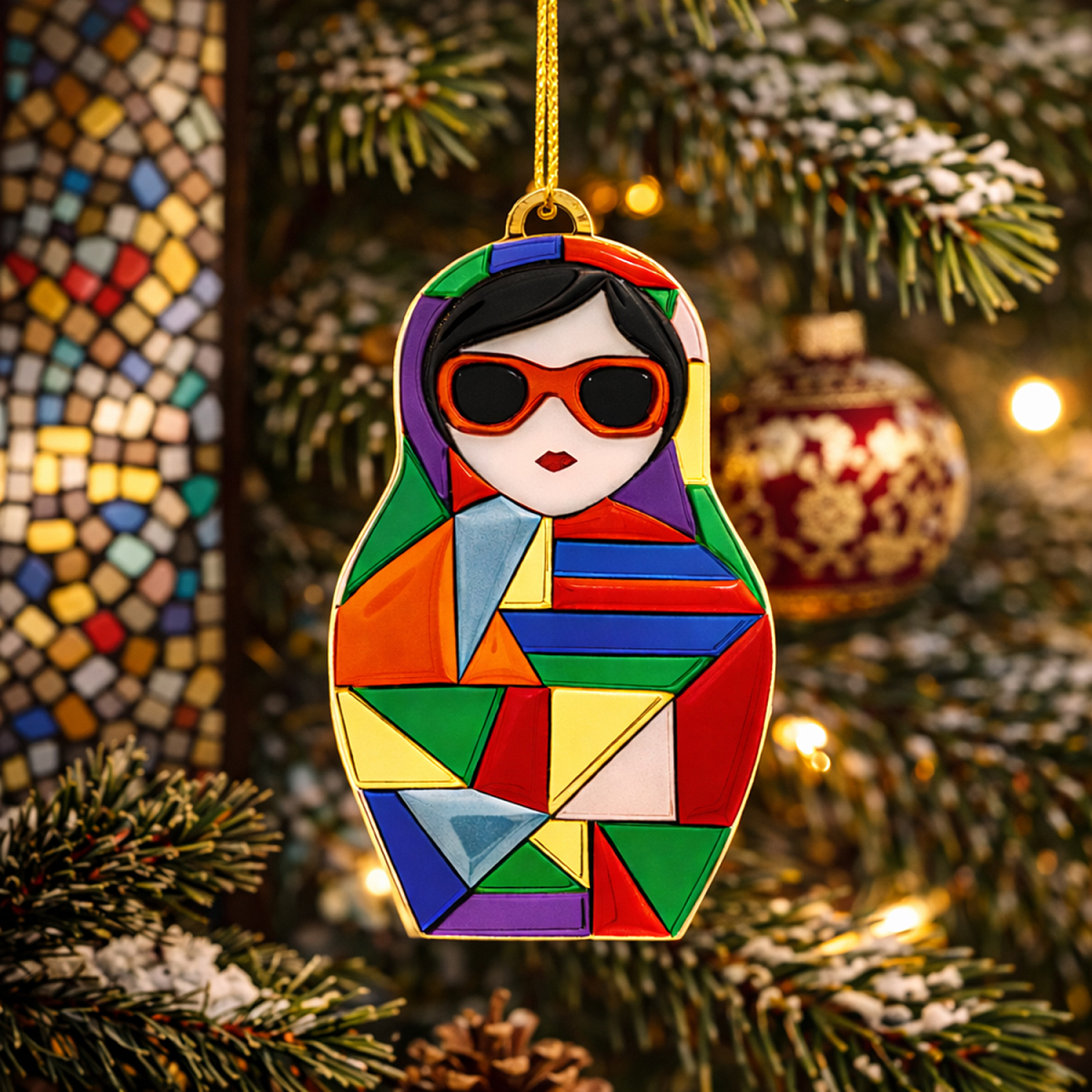 Ёлочная игрушка "Матрёшка с мозаикой" - новогоднее украшение из коллекции "Русские сезоны", сделанное вручную российскими мастерами.