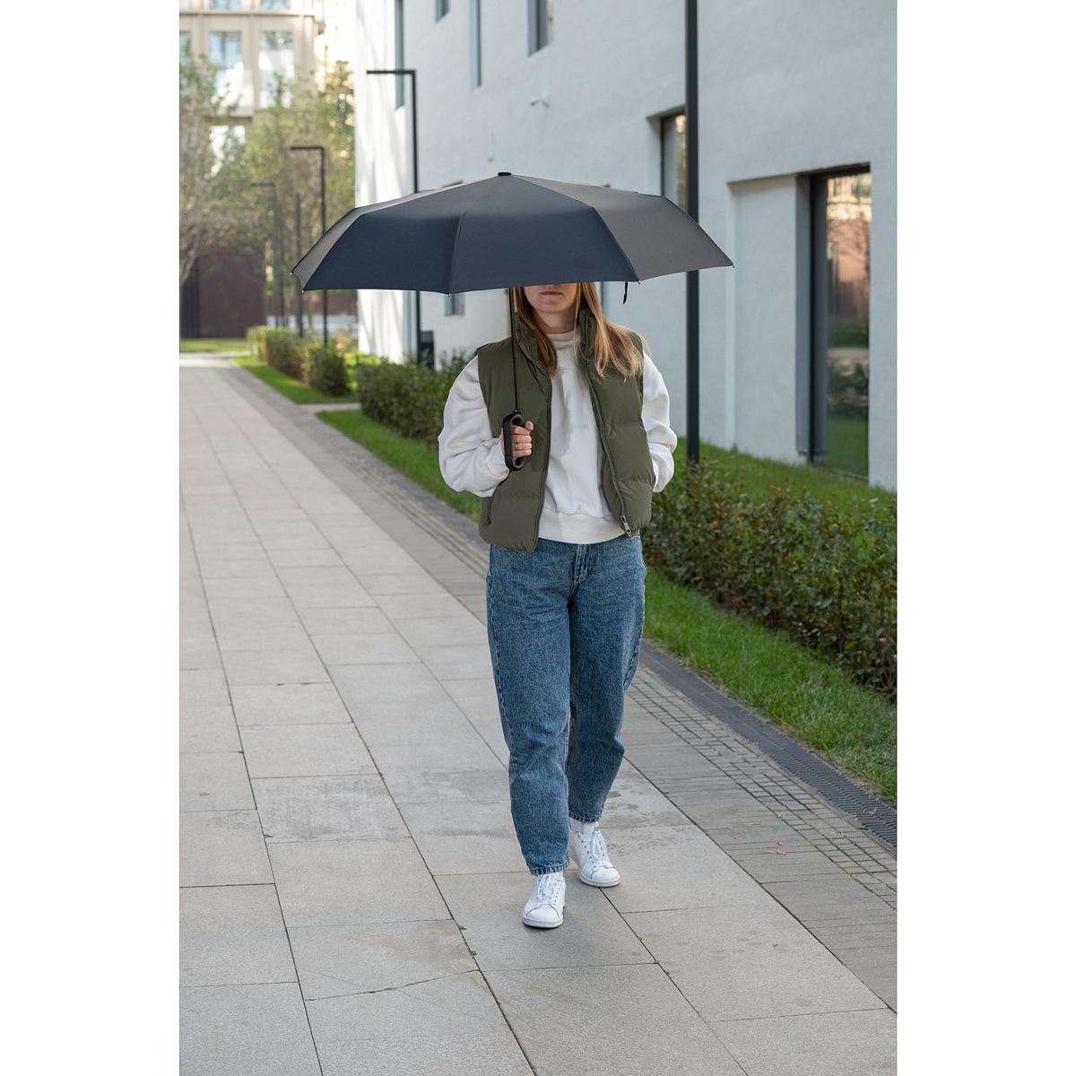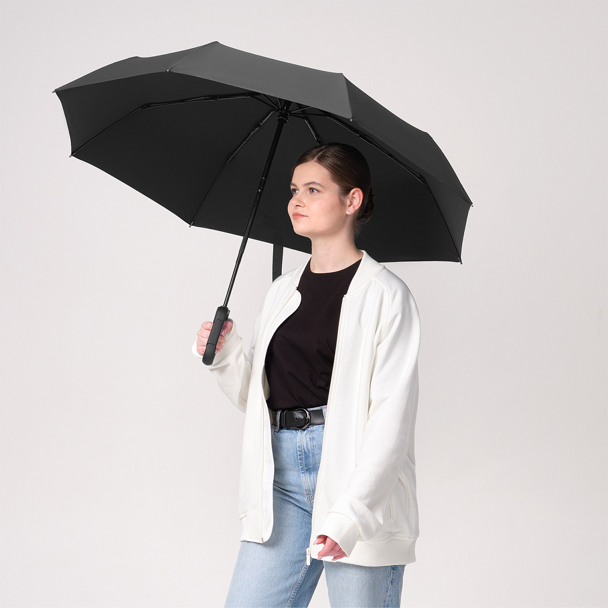 Надежный автоматический механизм в 3 сложения, 8 спиц из стеклопластика.