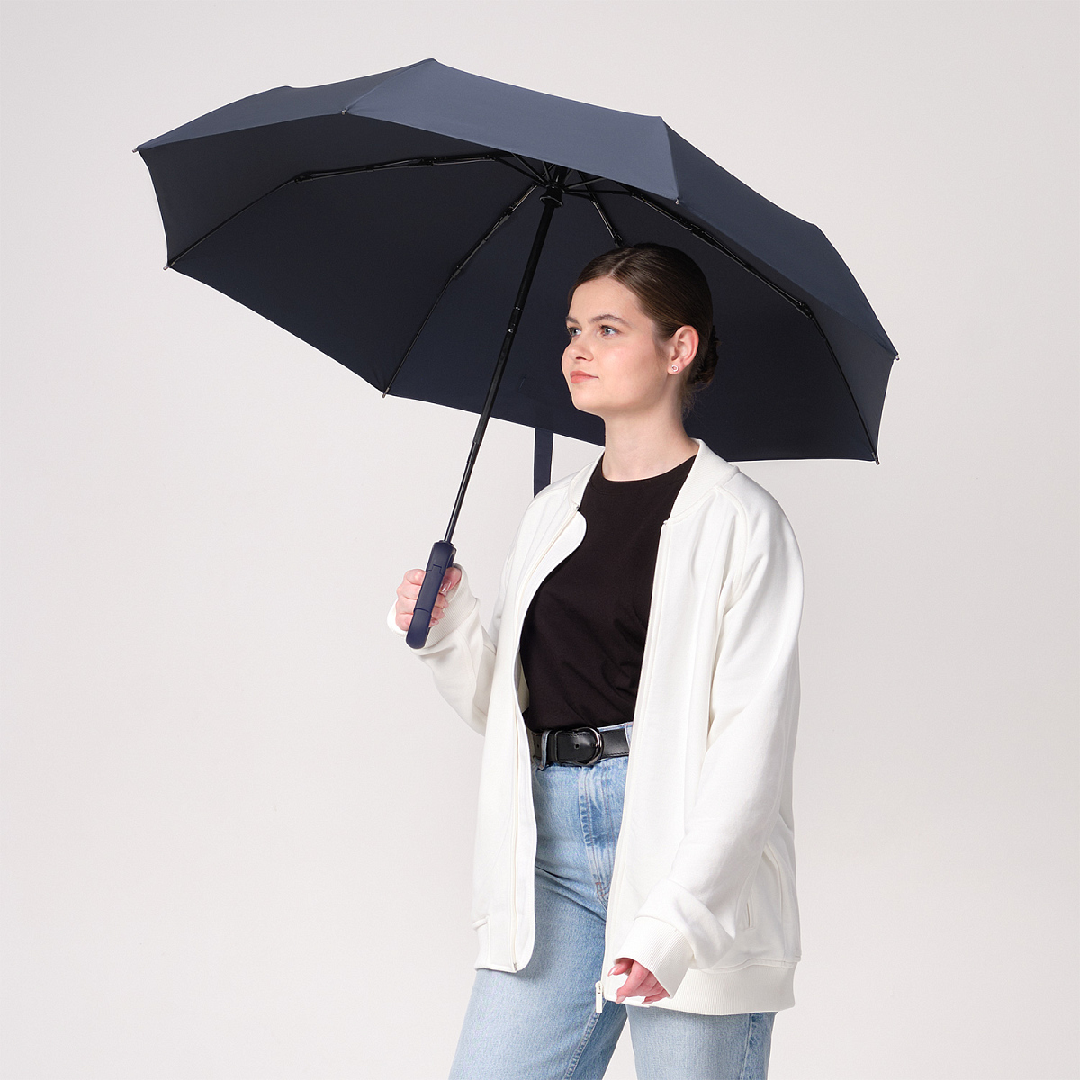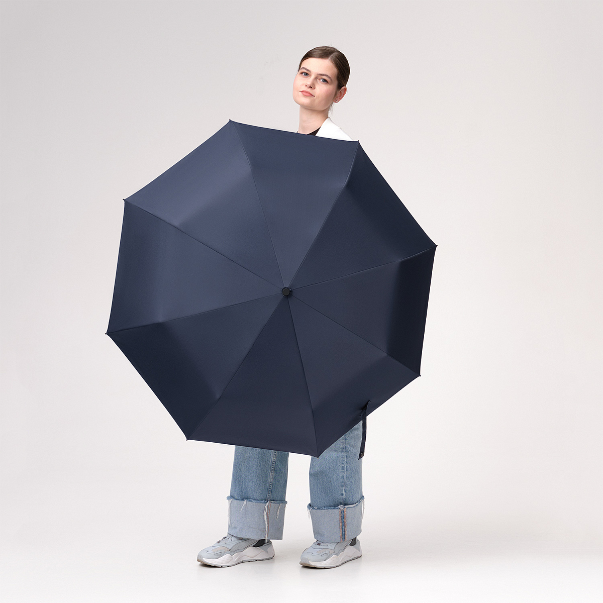 Надежный автоматический механизм в 3 сложения, 8 спиц из стеклопластика.