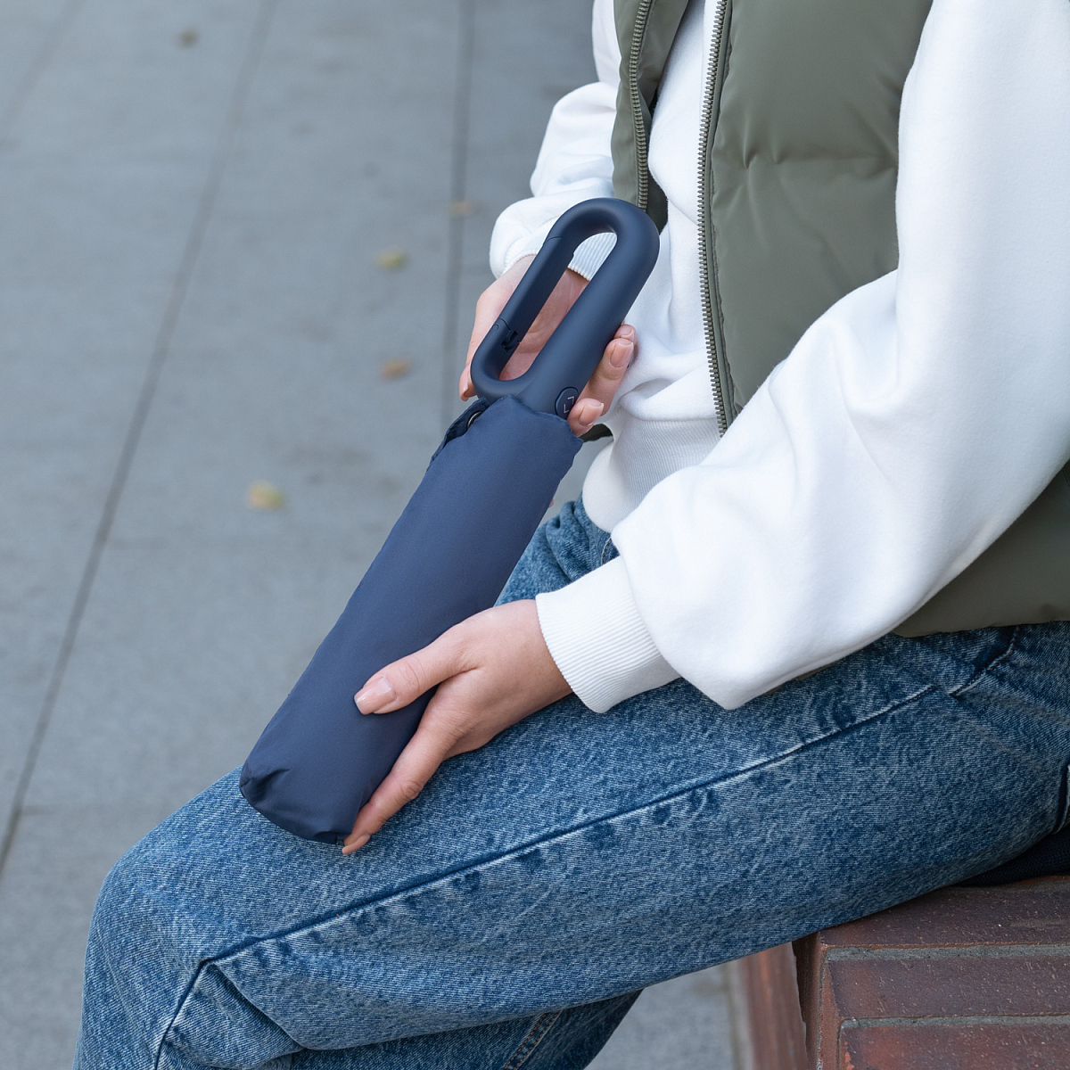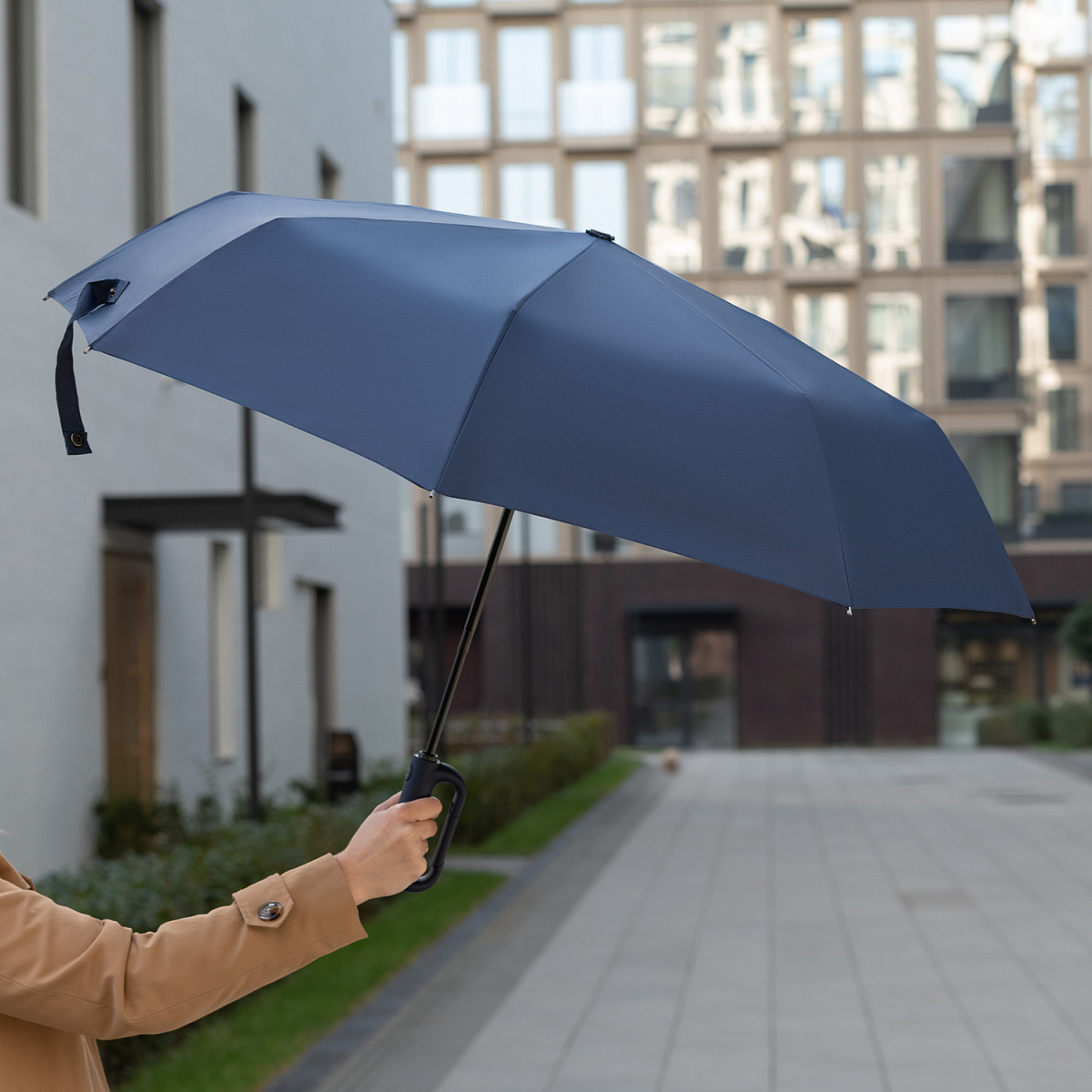 Стильный зонт Azimut — ваш идеальный спутник в дождливые дни. Зонт оснащен эргономичной ручкой-карабином, благодаря которой его удобно прикрепить к рюкзаку или сумке. Обладает системой защиты от ветра, которая выдержит даже сильные порывы. Материал купола эпонж 280T — позволяет высушить зонт за секунды, просто встряхнув его после использования. PU-покрытие на ручке зонта обеспечивает комфортное и долговечное использование аксессуара: оно устойчиво к истиранию, не скользит в руке и не становится липким.