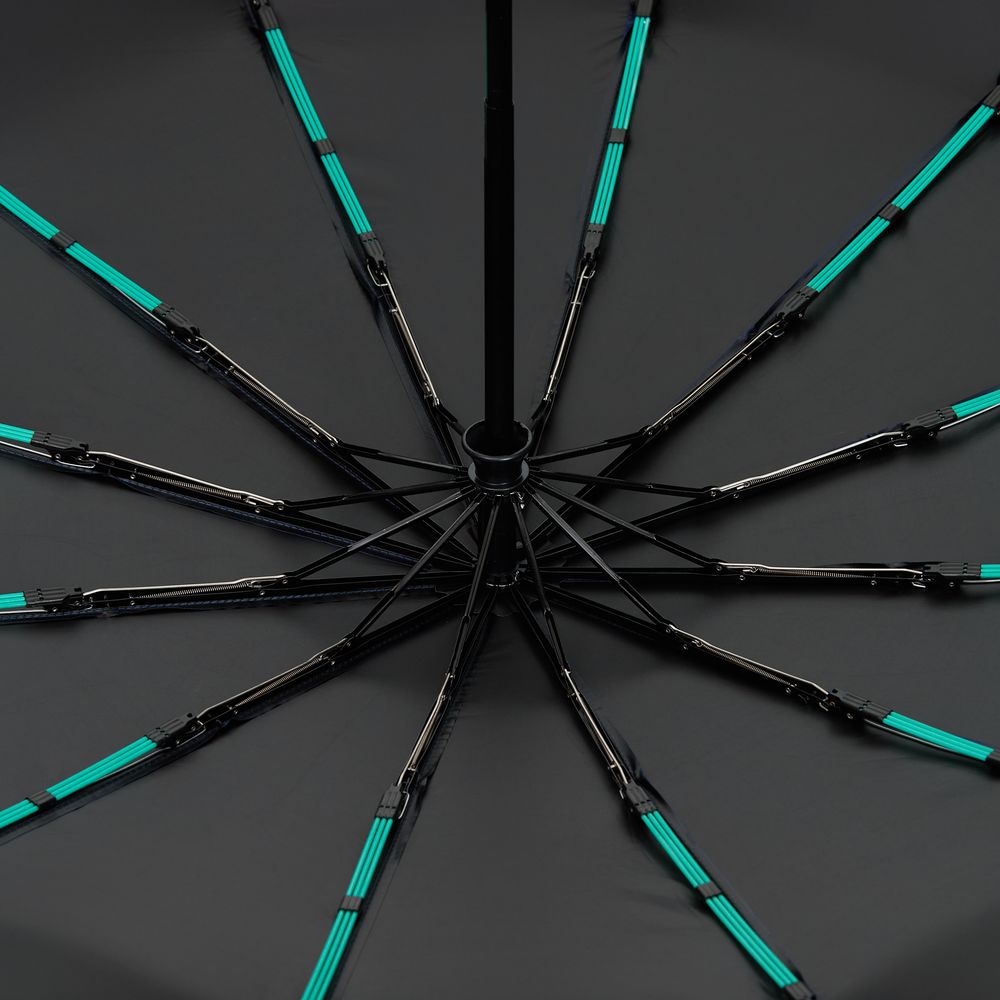Зонт Ribstar отвечает абсолютной устойчивостью на любую непогоду. 12 усиленных тройных спиц — это не просто каркас, а целая инженерная система, которая противостоит шквальному ветру. УФ-покрытие на внутренней стороне купола позволяет использовать зонт не только во время дождя, но и под палящим солнцем.