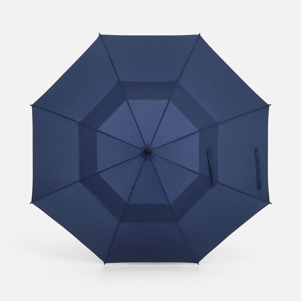 Зонт-трость Dome Double с большим двойным куполом — персональный шатер в ненастье. Он не выгибается при порывах ветра, а особая конструкция двойного купола уменьшает парусность зонта.