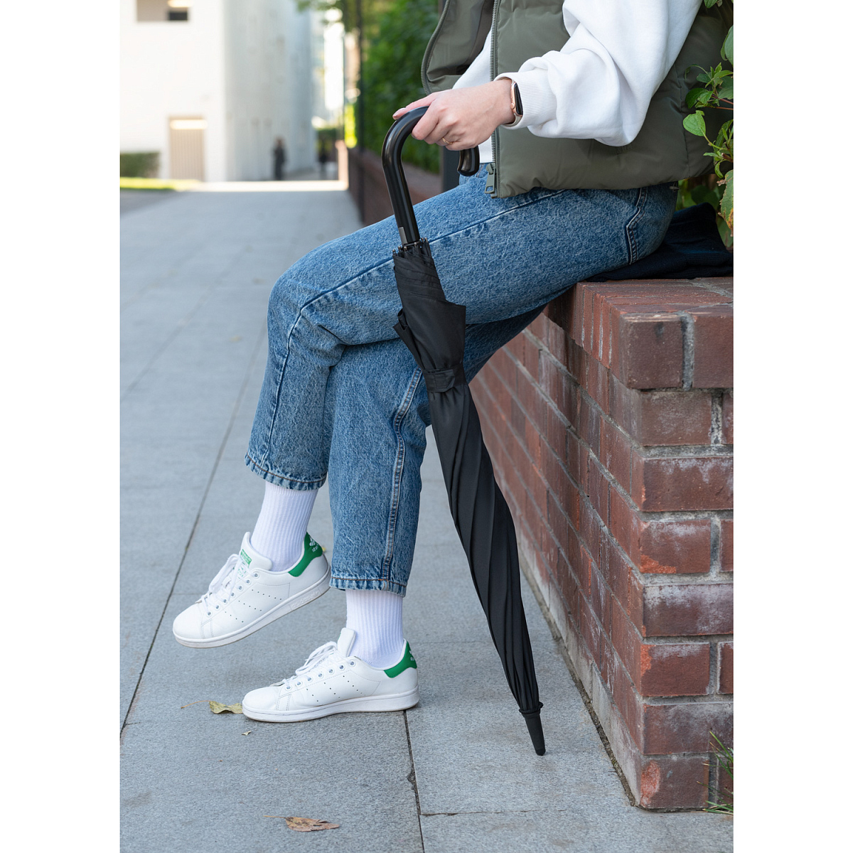 Удобная ручка формы J-Type. Зонт легко открывается надежным полуавтоматическим механизмом: просто нажмите кнопку на ручке, чтобы раскрыть купол.