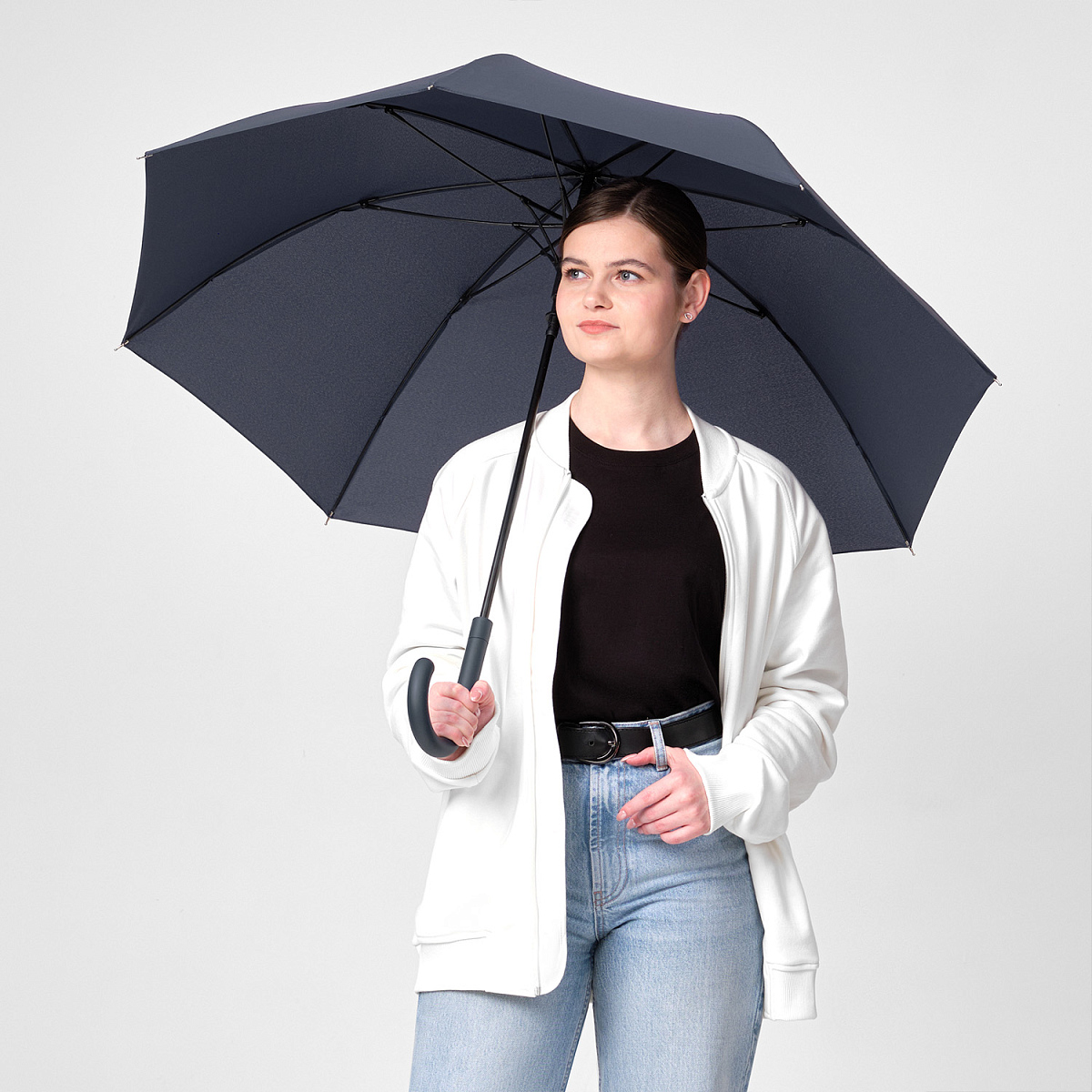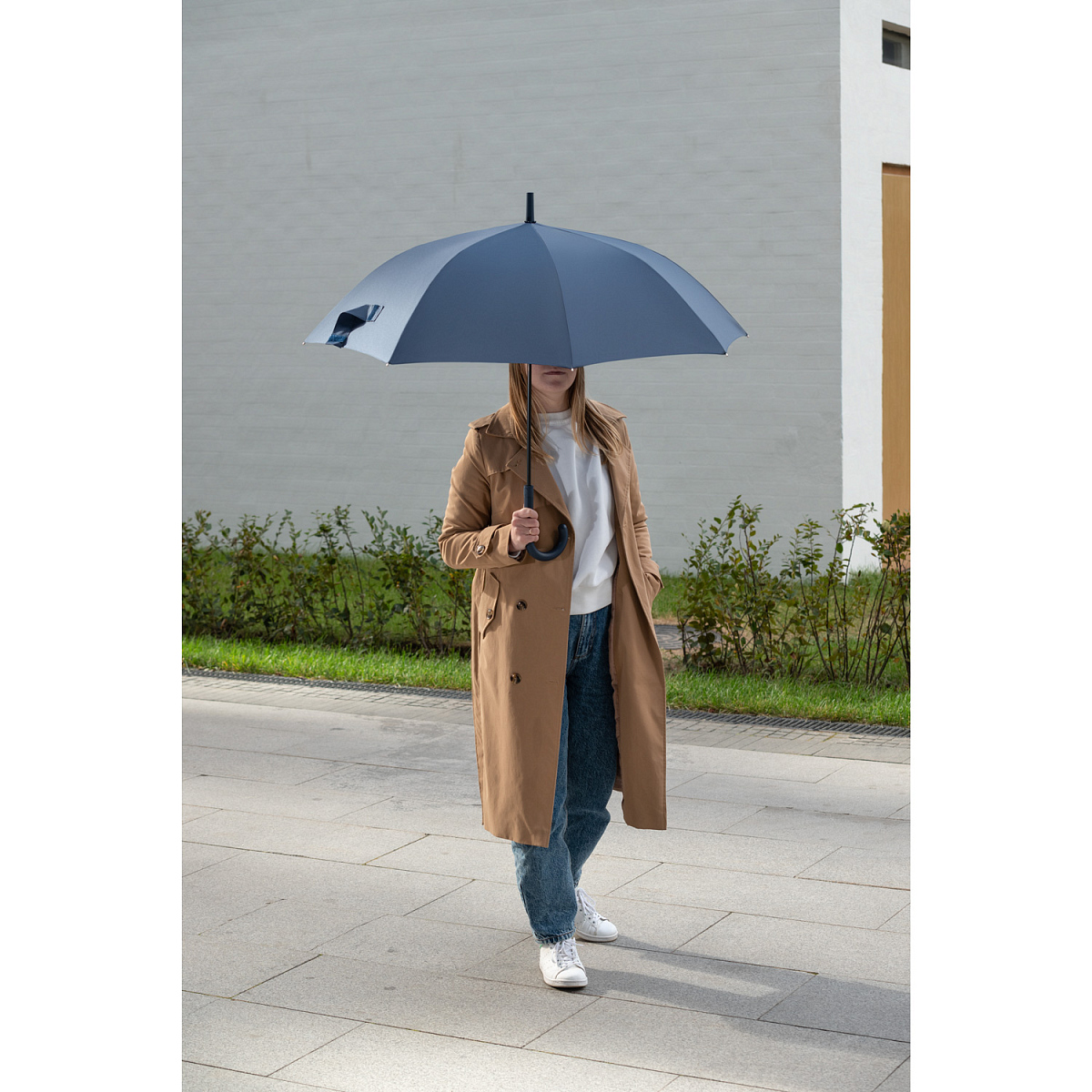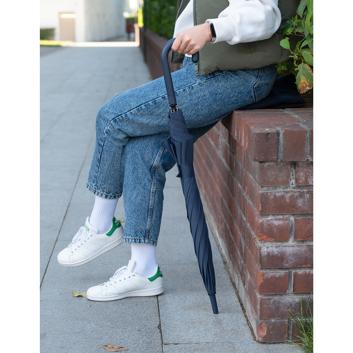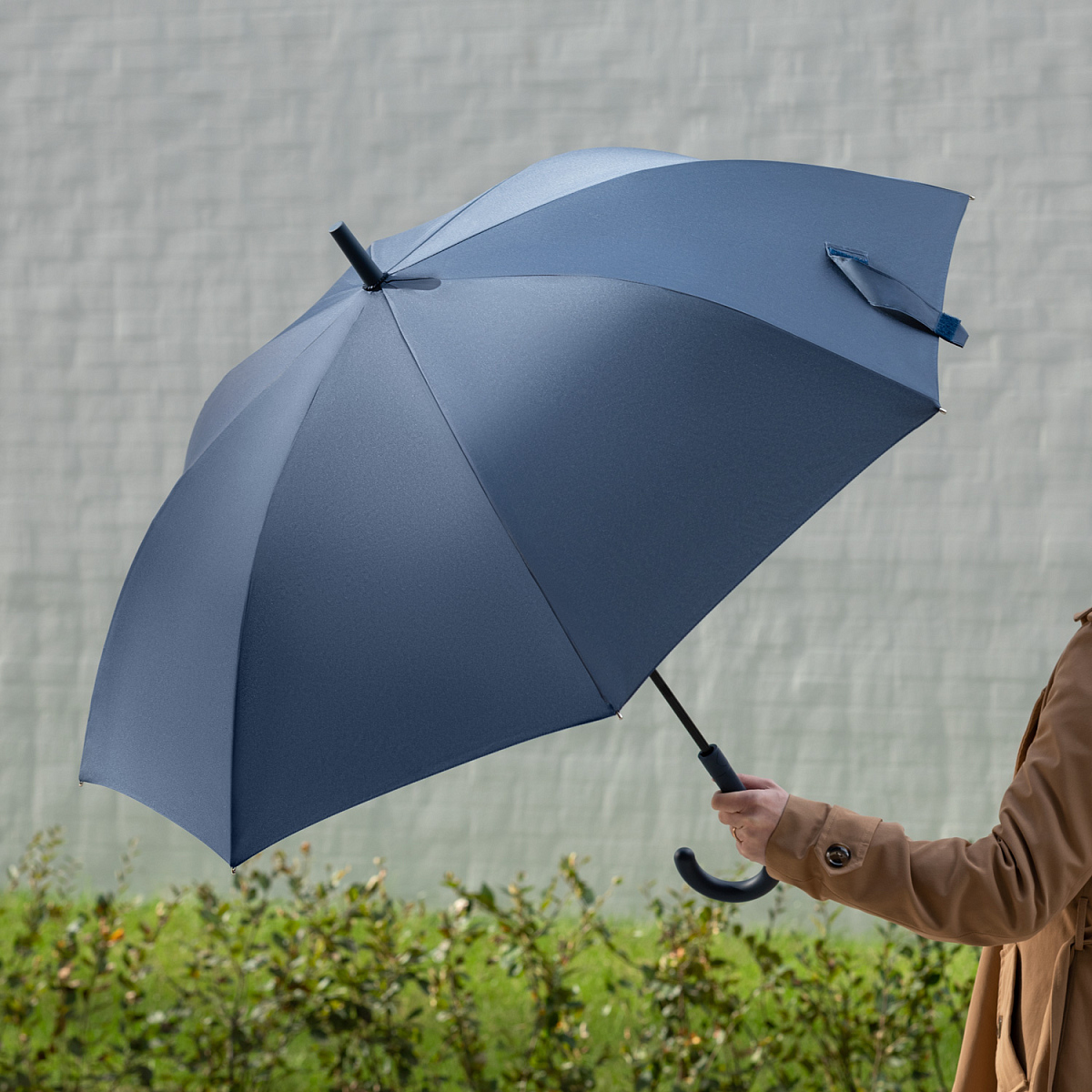 Зонт оснащен системой антиветер, что позволяет спицам не ломаться даже при сильном порыве ветра.