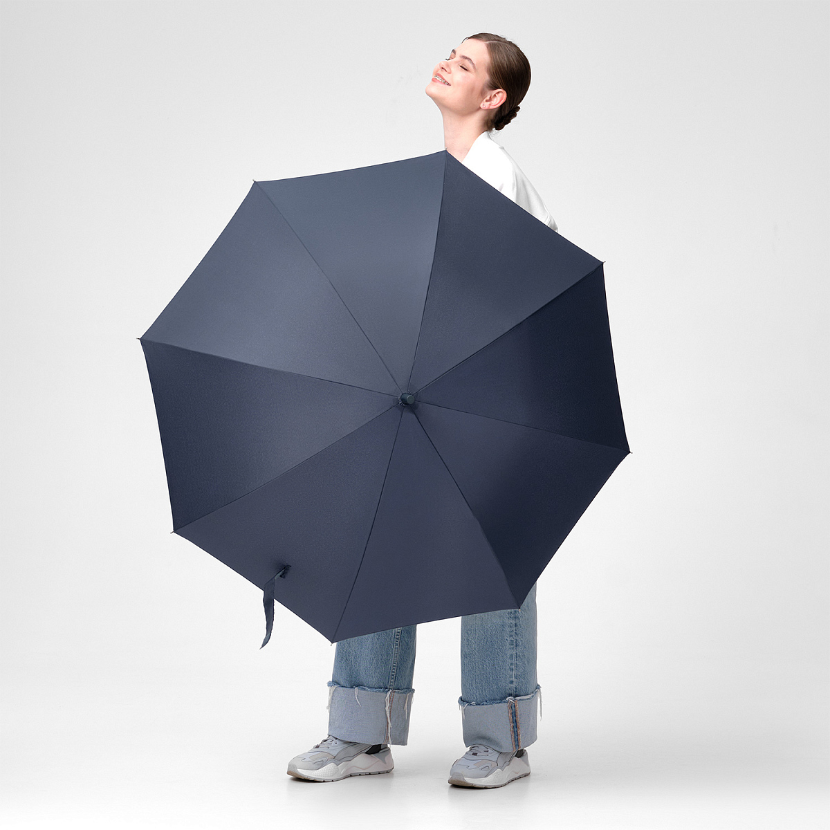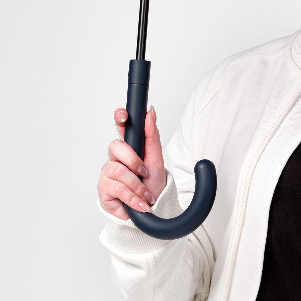 Удобная ручка в цвет купола зонта. PU-покрытие на ручке зонта обеспечивает комфортное и долговечное использование аксессуара: оно устойчиво к истиранию, не скользит в руке и не становится липким.