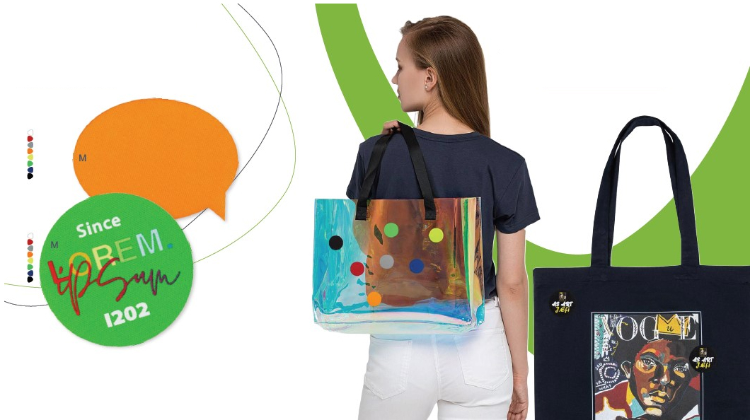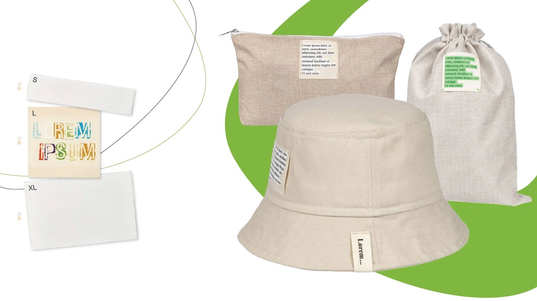 - Текстильные лейблы самые недорогие. Используются для любых текстильных изделий: маек, толстовок, вязаного трикотажа, кепок, шоперов. Способы нанесения фирменной символики: шелкотрансфер, DTF. Но могут использоваться и без печати, просто как яркий акцент.