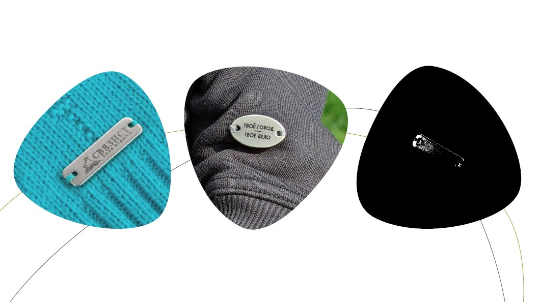 Металлические шильдики, прямоугольные или овальные, станут модным акцентом на любой одежде, изделиях из тканей и материалов, хорошо держащих форму. Основная технология нанесения логотипов и надписей — лазерная гравировка.