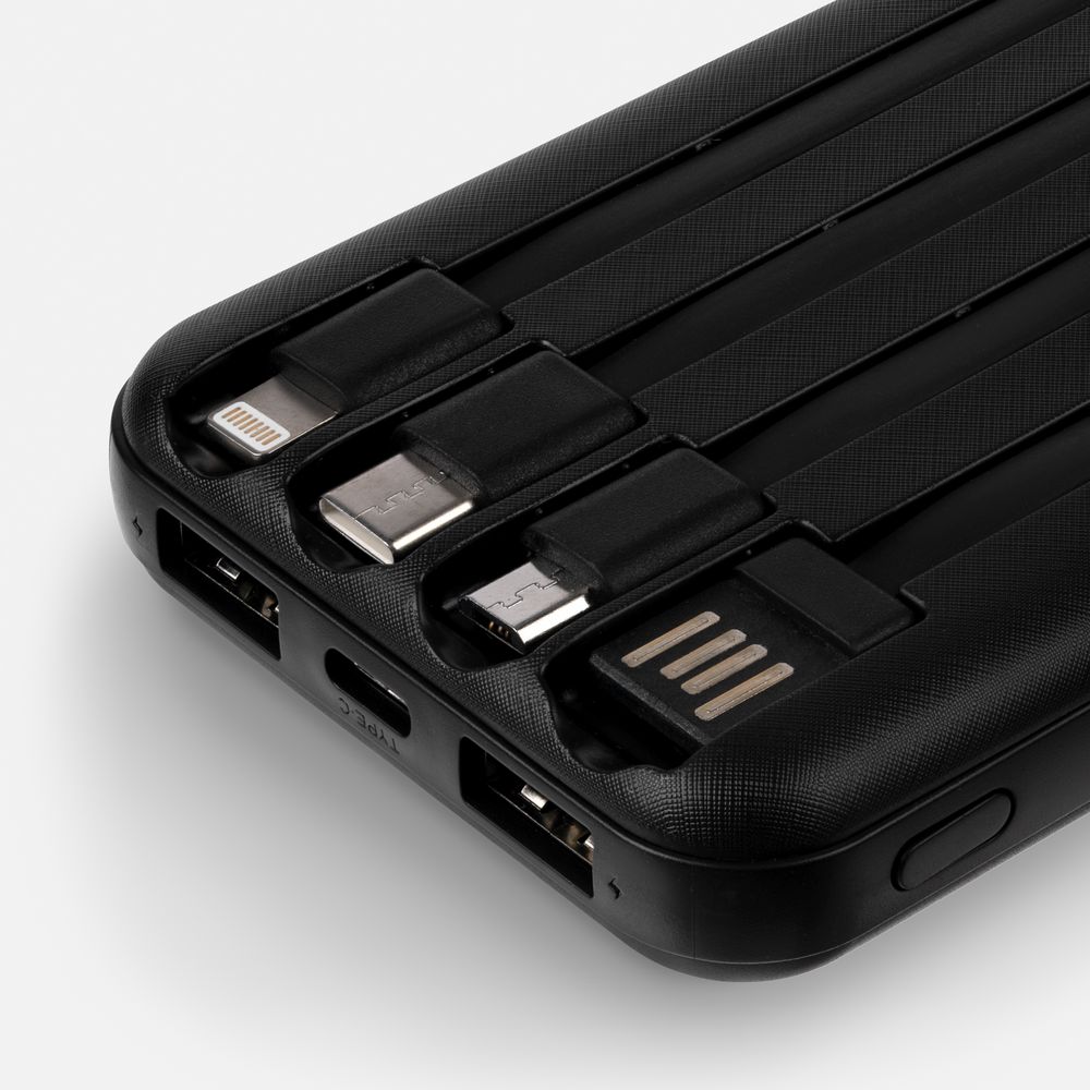 Интересная особенность аккумуляторов Omni — совершенно автономная конструкция: встроенные кабели позволяют заряжать как самые разные электронные устройства, так и сам аккумулятор. Если же смартфон поддерживает беспроводной заряд, то кабель вообще не нужен. Наглядный индикатор заряда в процентах.