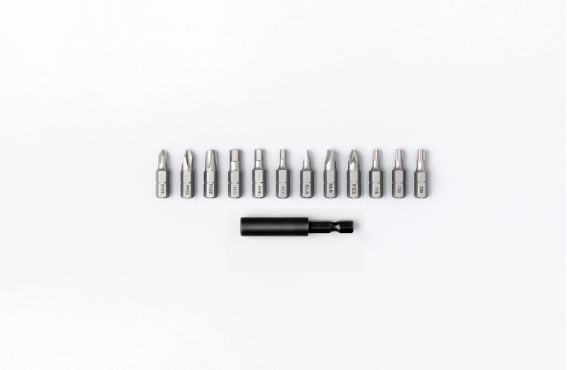 Комплектация: чехол, набор бит, провод USB-A - Type-C, отвертка