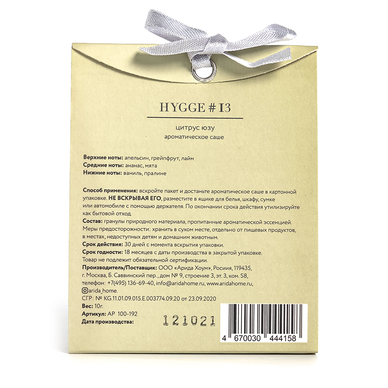 Аромасаше HYGGE #13 Цитрус юзу можно заказать в нашей компании по самой доступной цене от 305.56 рублей.