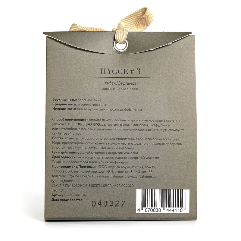 Аромасаше HYGGE #3 Табак/бергамот можно заказать в нашей компании по самой доступной цене от 305.56 рублей.