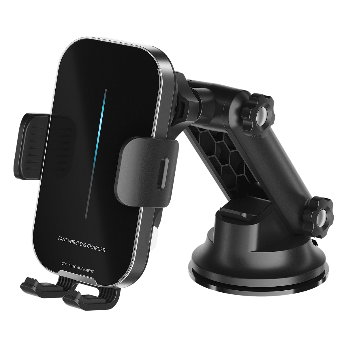 Особенности: автоматическая фиксация смартфона в держателе; автоматическое совмещение зарядных катушек; работает практически бесшумно; удобные механические кнопки; монтаж на стекло на приборную панель и в дефлектор; широкий диапазон регулировок для удобной установки; можно извлекать смартфон даже при отключенном питании
