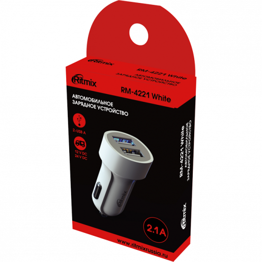 Автомобильное ЗУ RITMIX RM-4221 можно заказать в нашей компании по самой доступной цене от 190 рублей.