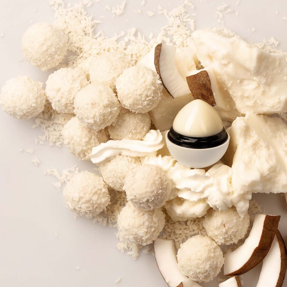 Ухаживающий бальзам для губ с аппетитным ароматом кокоса и сливок.