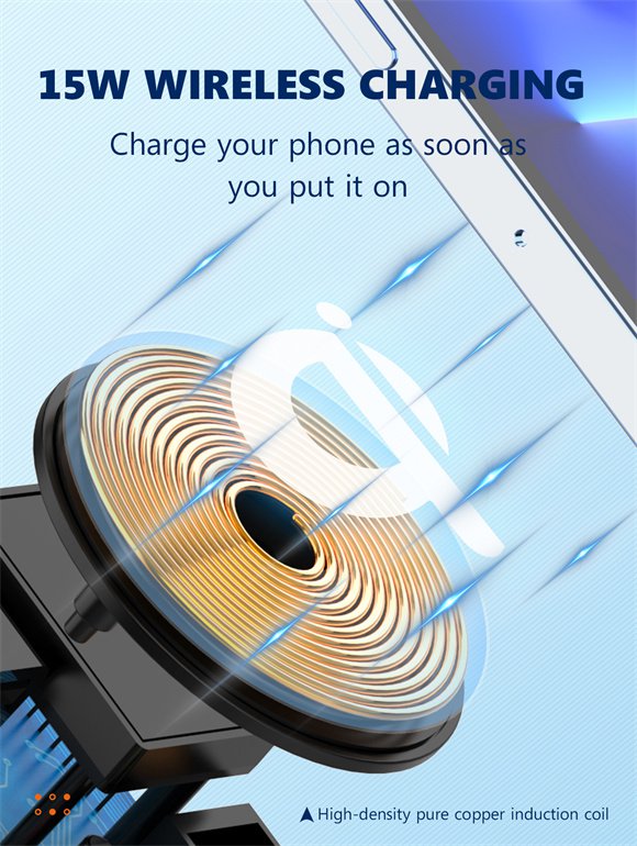 Особенности: одно зарядное устройство для всех, подходит для дома и офиса; функция термостойкости (беспроводное зарядное устройство не нагревается, когда на него надевают металлические предметы или брелки для ключей)