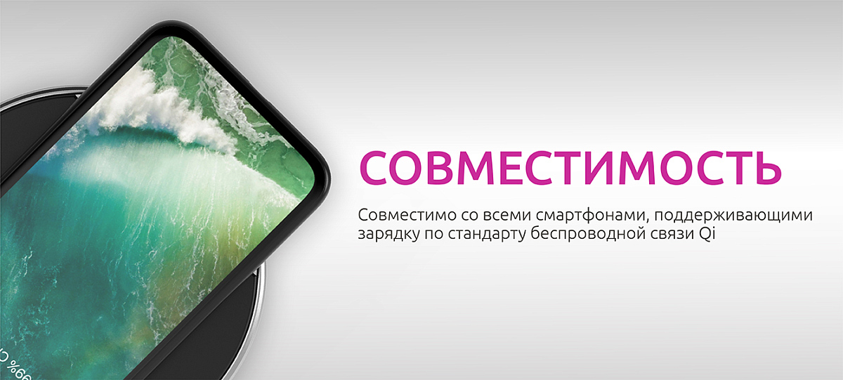 Особенности: 15 Вт мощности, уникальный дизайн, сочетающий в себе пластик софт-тач и алюминий, поддержка quick сharge 2.0/3.0