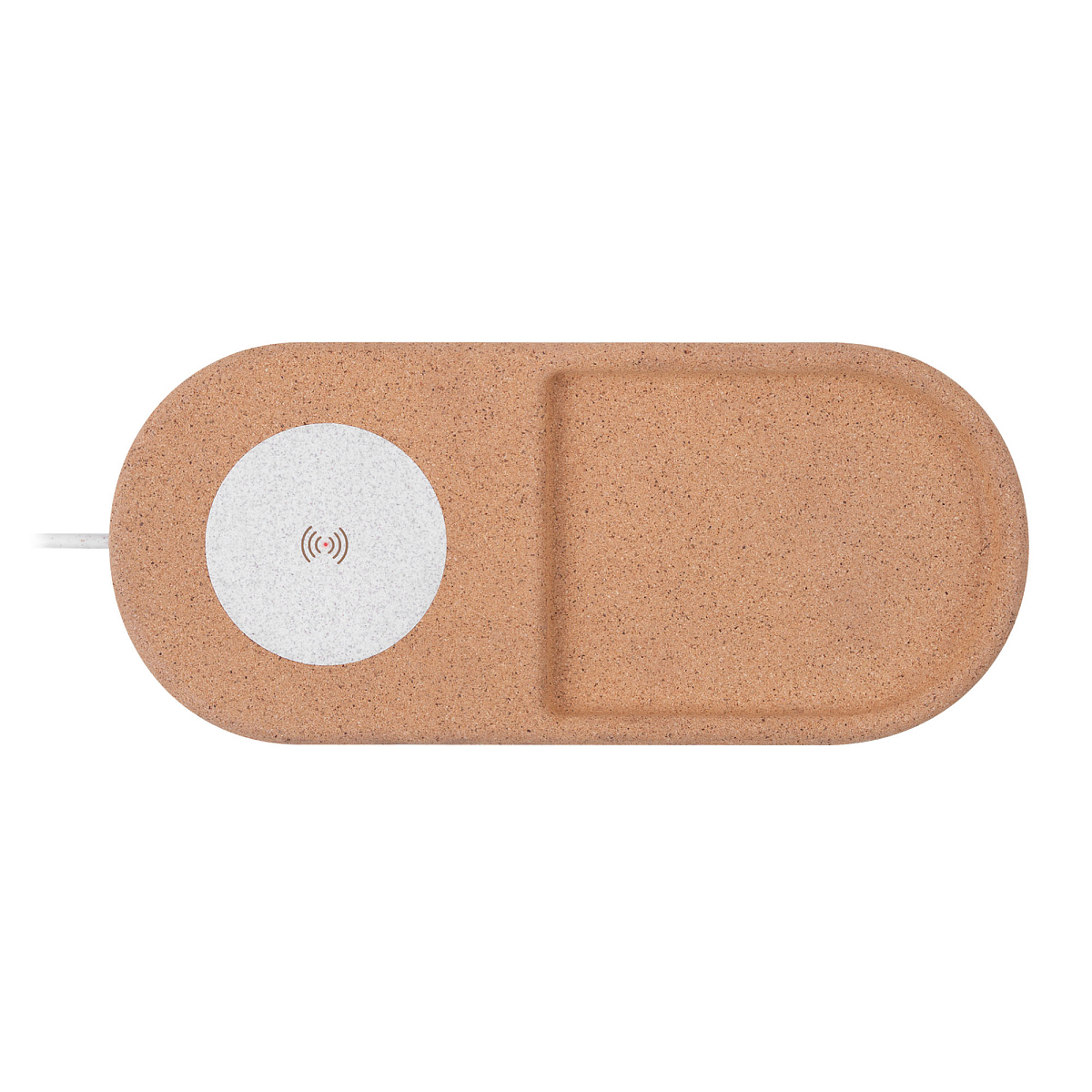 Особенности: быстрая беспроводная зарядка поддерживает режимы 5/7.5/10Вт; поддерживает различные устройства изготовленные по стандарту Qi; в производстве используется возобновляемый материал пробка и частично переработанный пластик