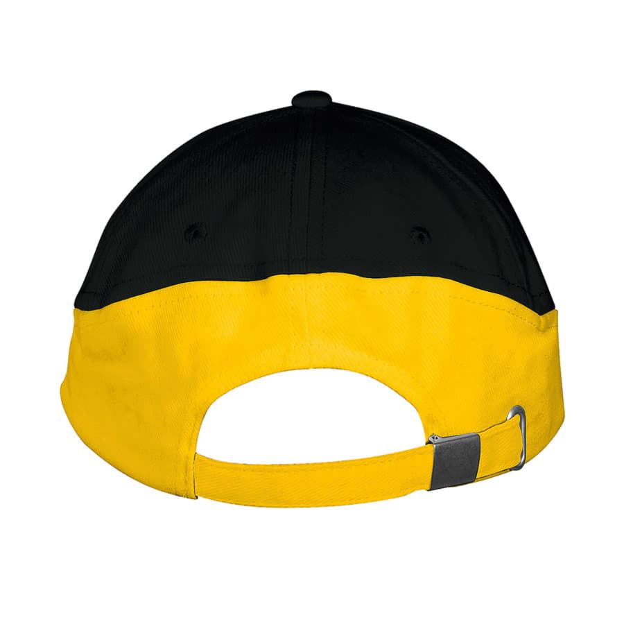 Двухцветная бейсболка BOOSTER без лобового шва с жестким козырьком "сэндвич". 4 вышитых люверса, регулируемая металлическая застежка. Цвет (зелёный), близкий к PANTONE 348C Цвет (жёлтый), близкий к PANTONE 1225C58,5 см - средний размер, с помощью застёжки его можно увеличить или уменьшить до необходимого.