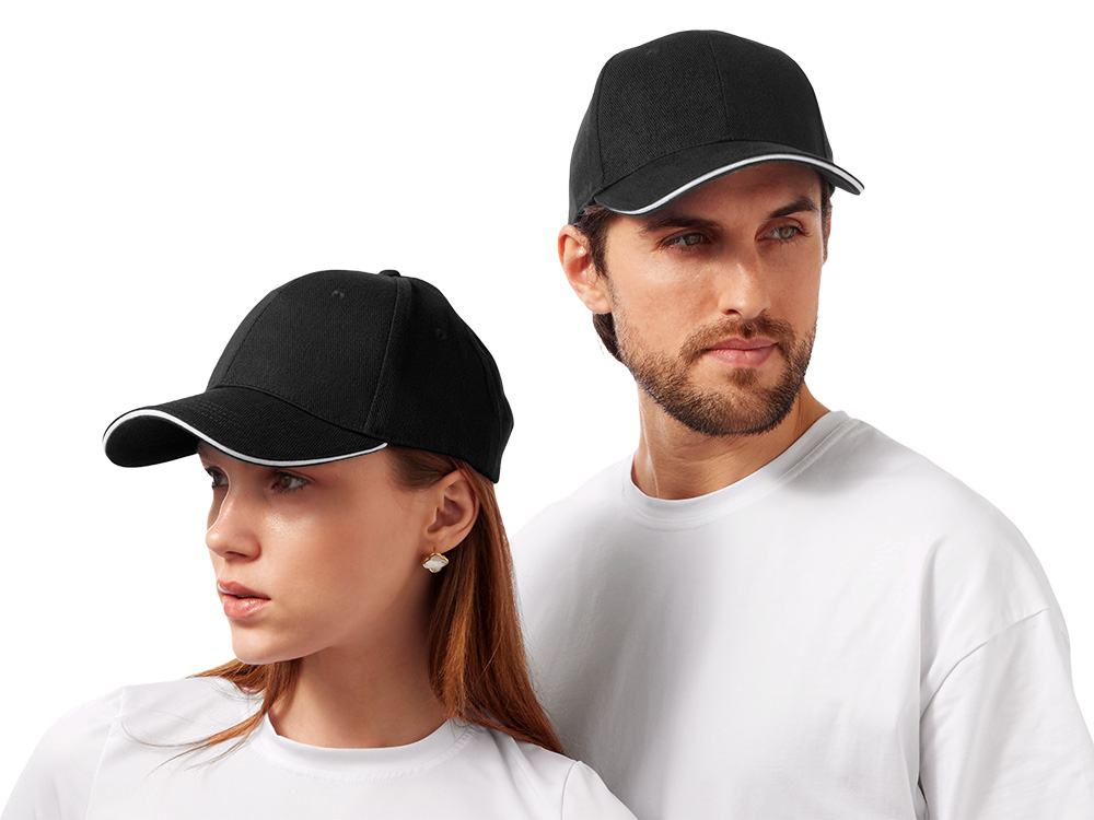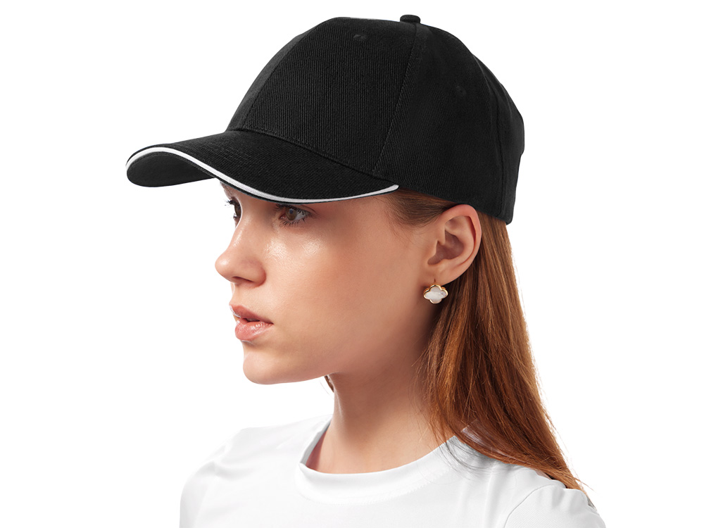 Стильный контрастный кант по козырьку и заднему хлястику добавляет изделию выразительности и делает бейсболку заметным элементом образа.