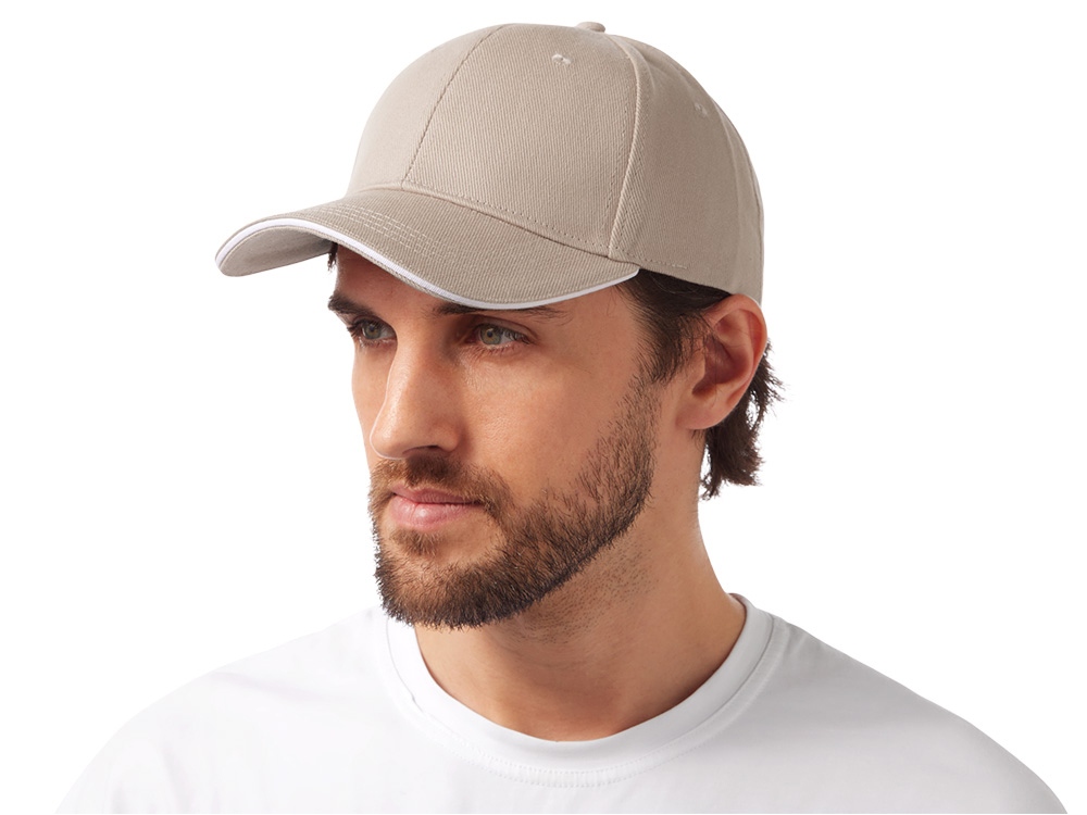 Стильный контрастный кант по козырьку и заднему хлястику добавляет изделию выразительности и делает бейсболку заметным элементом образа.