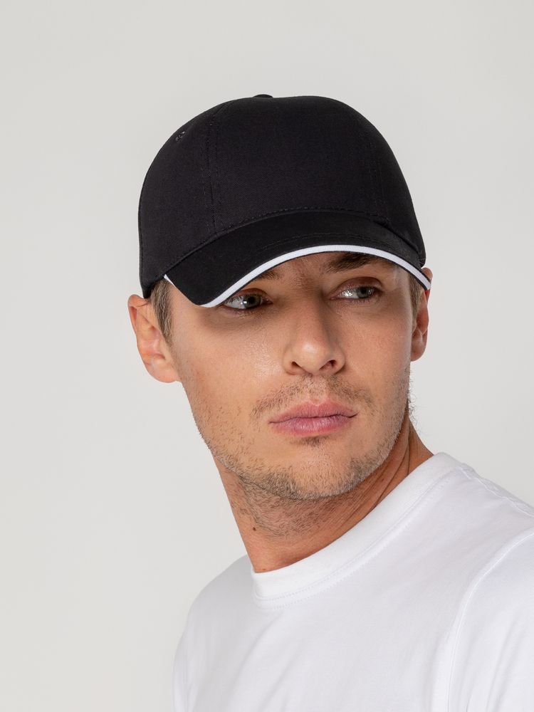 Бейсболка Canopy, черная с белым кантом можно заказать в нашей компании по самой доступной цене от 596 рублей.