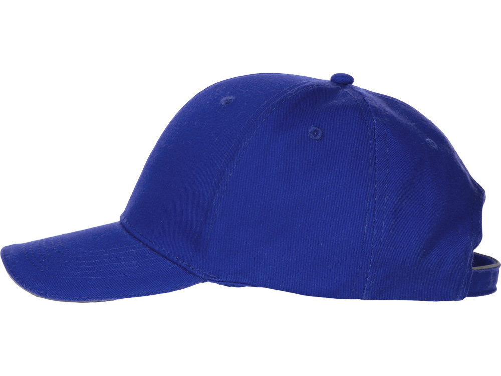 Шестиклинная бейсболка со светоотражающим кантом по козырьку и заднему хлястику - отличный вариант для занятий спортом в вечернее время. Объем регулируется металлической застежкой.