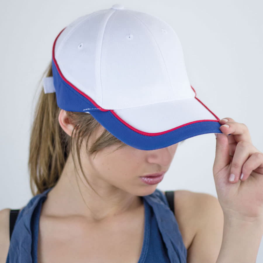 Стильная трехцветная бейсболка RACING: - 6 клиньев,- лобовой шов,- 6 вышитых люверсов для лучшей вентиляции,- застёжка на липучке,- изогнутый козырек, - контрастный кант по всему периметру кепки. Основной цвет, близкий к Pantone 200 C, дополнительный - Pantone 433 C, кант – Pantone WHITE58,5 см - средний размер, с помощью застёжки его можно увеличить или уменьшить до необходимого.