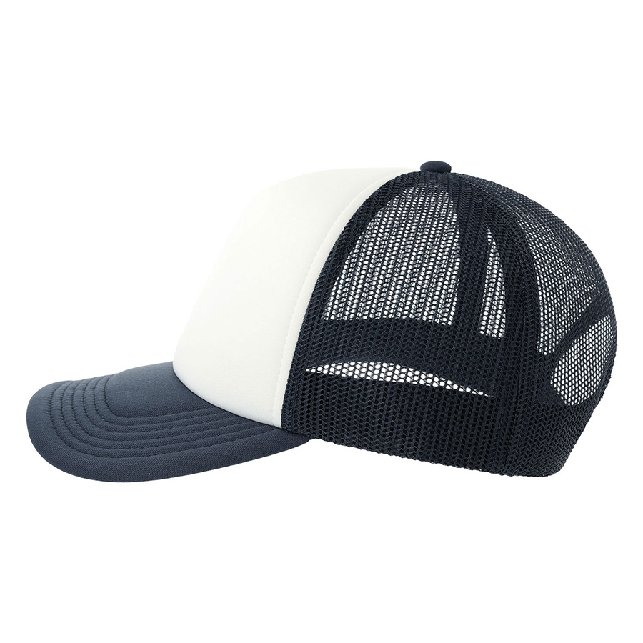 Легкая бейсболка RAPPER - культовая бейсболка-тракер, которая отлично подойдет для мероприятий, проводимых в теплое время года. - 5 клиньев, - без лобового шва, - боковые и задние панели со вставкой из мягкой сетки, - изогнутый козырек, - пластиковая застежка. Лобная часть купола: цвет близкий к Pantone White, козырёк и сетка - Pantone 1235 C