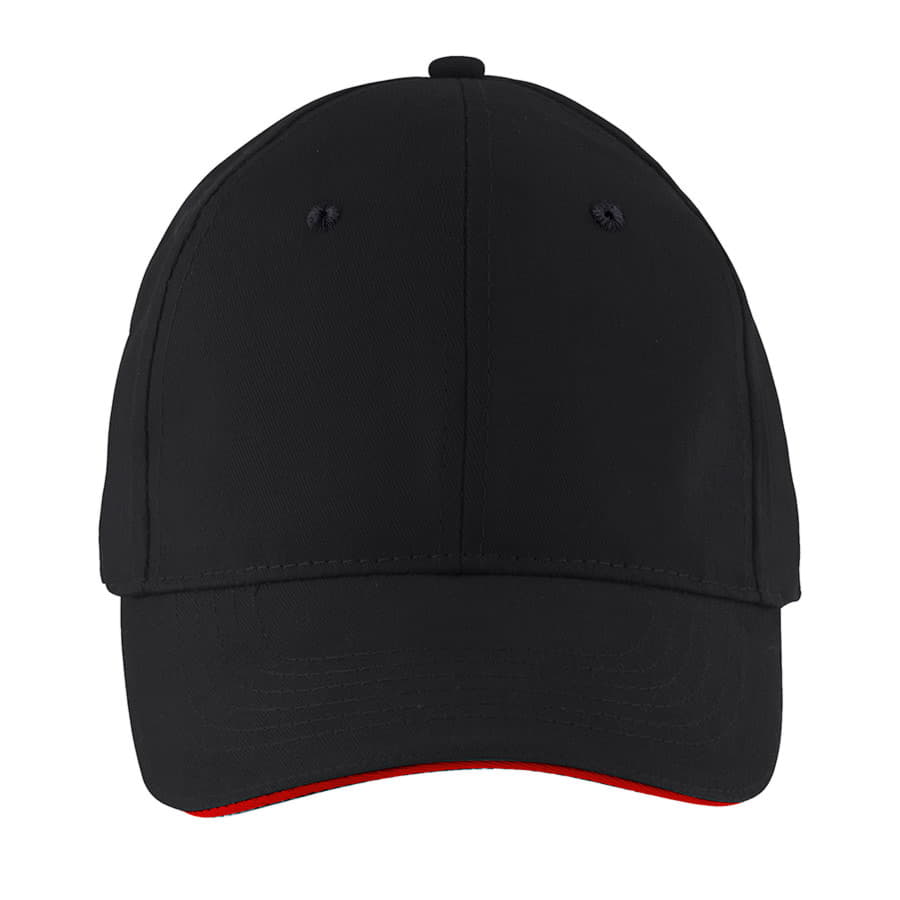Бейсболка со швом на лбу, 6 клиньев, 6 вышитых люверсов, козырек одноцветный, застежка-липучка.