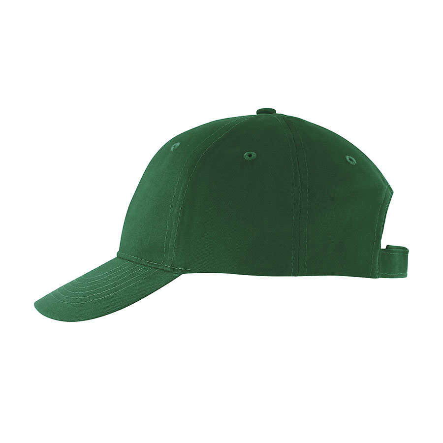 Бейсболка со швом на лбу, 6 клиньев, 6 вышитых люверсов, козырек одноцветный, застежка-липучка.