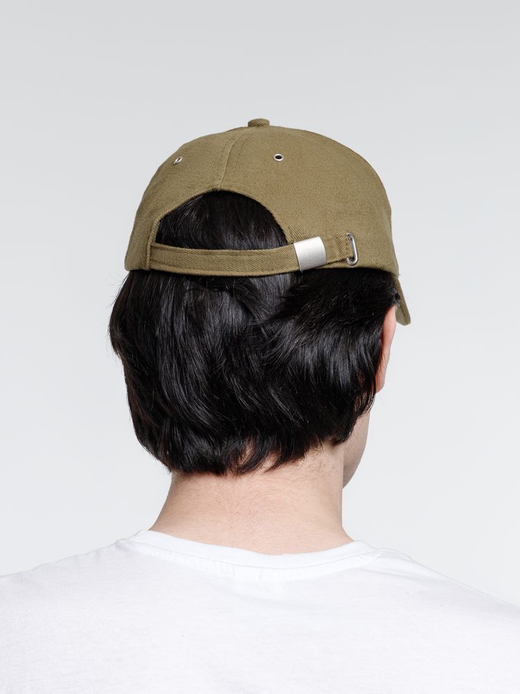 Минималистичная бейсболка с закругленным козырьком и большим местом для нанесения логотипа.
