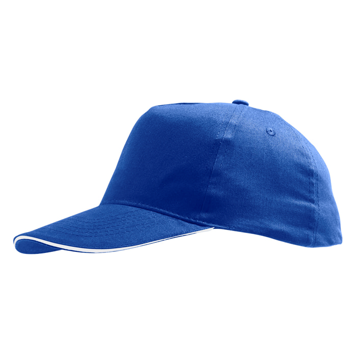 Бейсболка без шва на лбу, 5 клиньев, 4 вышитых люверса, двухцветный жесткий козырек "сэндвич", застежка-липучка.