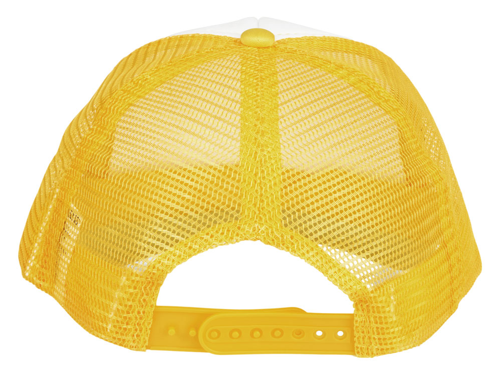 Кепка из 5 панелей Тракер. Оригинальная кепка на окружность головы 58 см с передней поролоновой частью, пластиковой сеткой сзади и пластиковой застежкой. Эта кепка полностью соответствует требованиям к соединениям AZO, формальдегиду и ПХФ. Полиэстер и поролон.