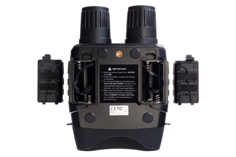Корпус бинокля имеет эргономичную форму, поэтому удобно ложится в руку. Прибор также не боится брызг воды. Для управления используются всего шесть кнопок, поэтому работать с биноклем очень легко — все нужное находится под рукой. Одного комплекта батареек хватает на 4–10 часов непрерывной работы (длительность работы зависит от интенсивности использования ИК-подсветки).Бинокль с функцией прибора ночного видения. В комплект входит чехол из полиэстера.