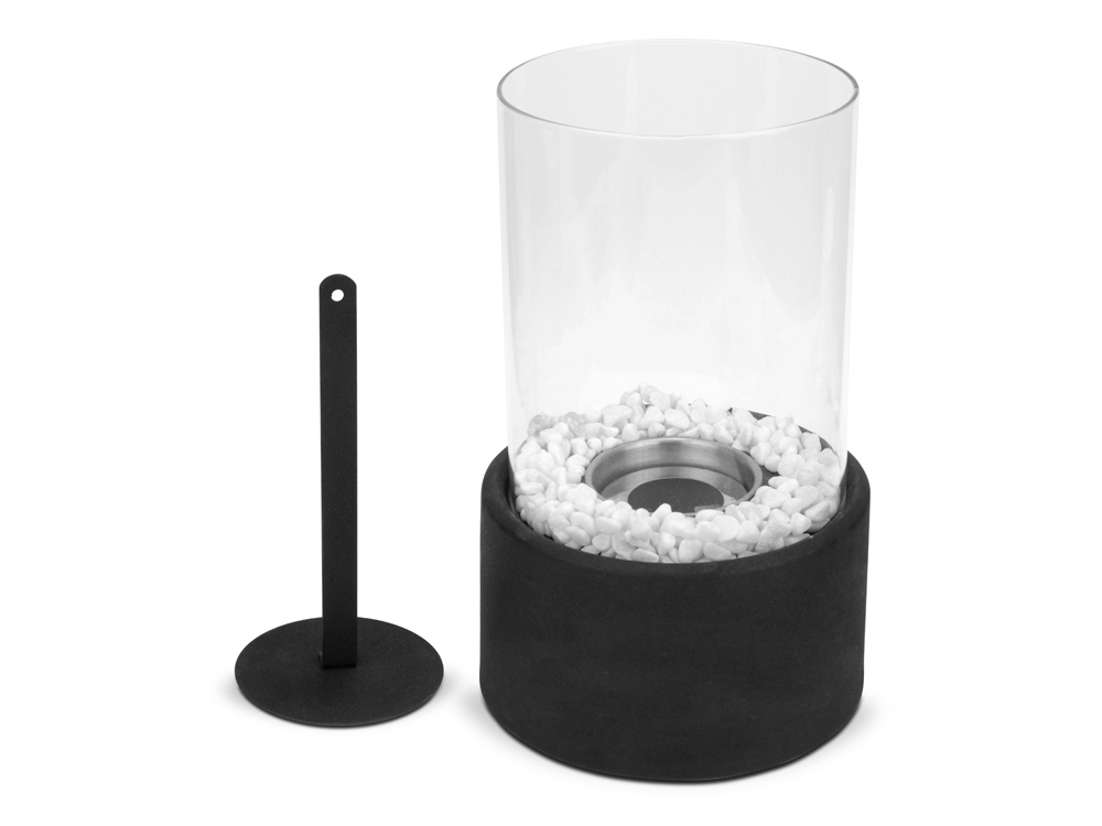 Комплектность: биокамин со стеклянной колбой- 1шт, емкость для топлива- 1шт, декоративные камни, заглушка для тушения пламени- 1шт, инструкция по применению