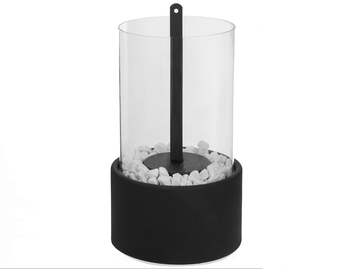 Комплектность: металлическая база, стеклянная колба, емкость для топлива, заглушка для тушения пламени, керамическая вата, декоративные камни